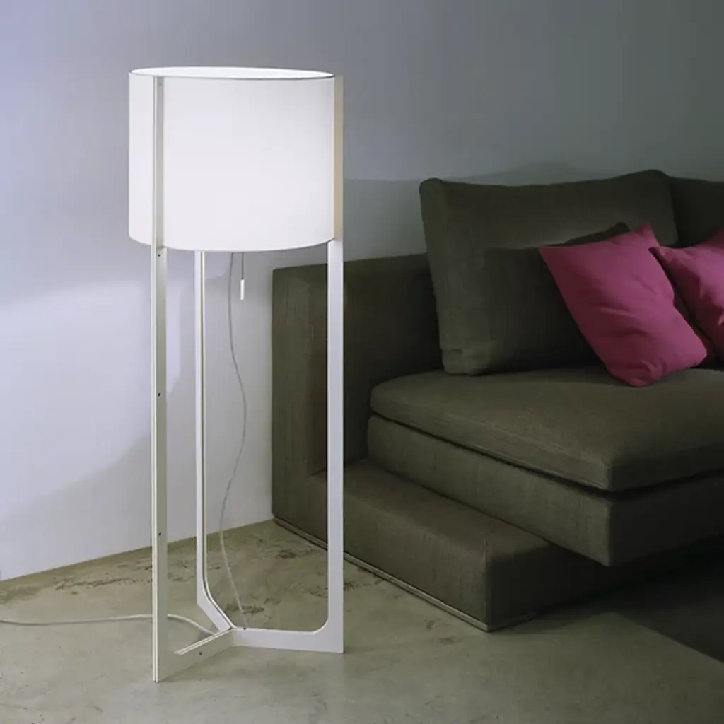 The Nirvana Floor Lamp by Carpyen offers inspired appeal to interiors. Meticulously crafted in Barcelona, Spain, it features a sturdy metal construction complemented by a luxurious white linen shade, embodying durability and sophistication. Its three-lobed base supports powerful lamping beneath a cylindrical linen shade, offering ample illumination with a touch of elegance. This lamp, designed by Gabriel Teixidó, puts a modern spin on transitional style, making it a versatile addition to any interior space. Its handcrafted precision and expressive design help the fixture shine with a functional refinement. Missing designer Gabriel Teixidó