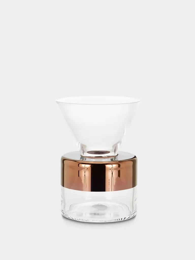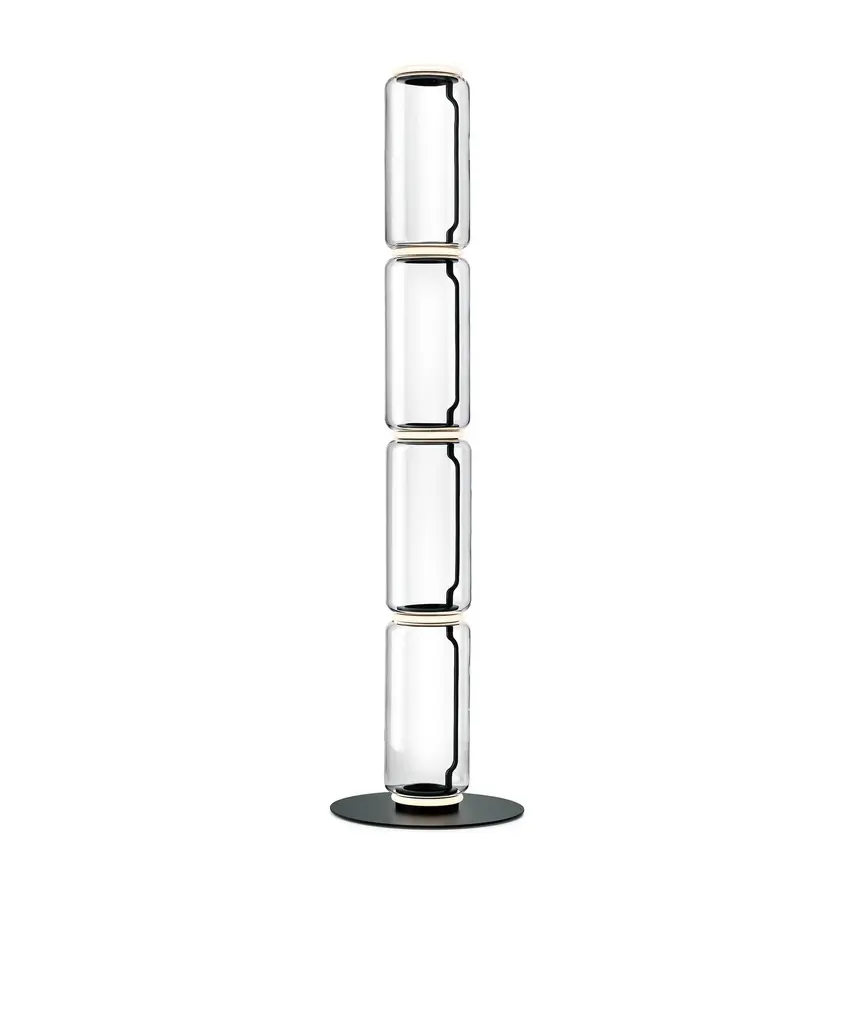 An innovative LED-based lighting system, created by renowned designer Konstantin Grcic for FLOS. The foundation of the the Noctambule series is a transparent hand-blown glass cylinder, surrounded on both top and bottom by discrete LED technology. These cylinders stack to form columns of light that illuminate at the intersection between each module. Configurable as a hanging or standing lamp, Noctambule features additional components that allow for numerous options. The cylinders are available in two heights (Low and High), and a bowl or cone-shaped head can also be added for more directional light. All fixtures are also dimmable (the floor lamp models equipped with a pedal-based dimmer switch). This authentic design is produced in Italy exclusively by Flos.