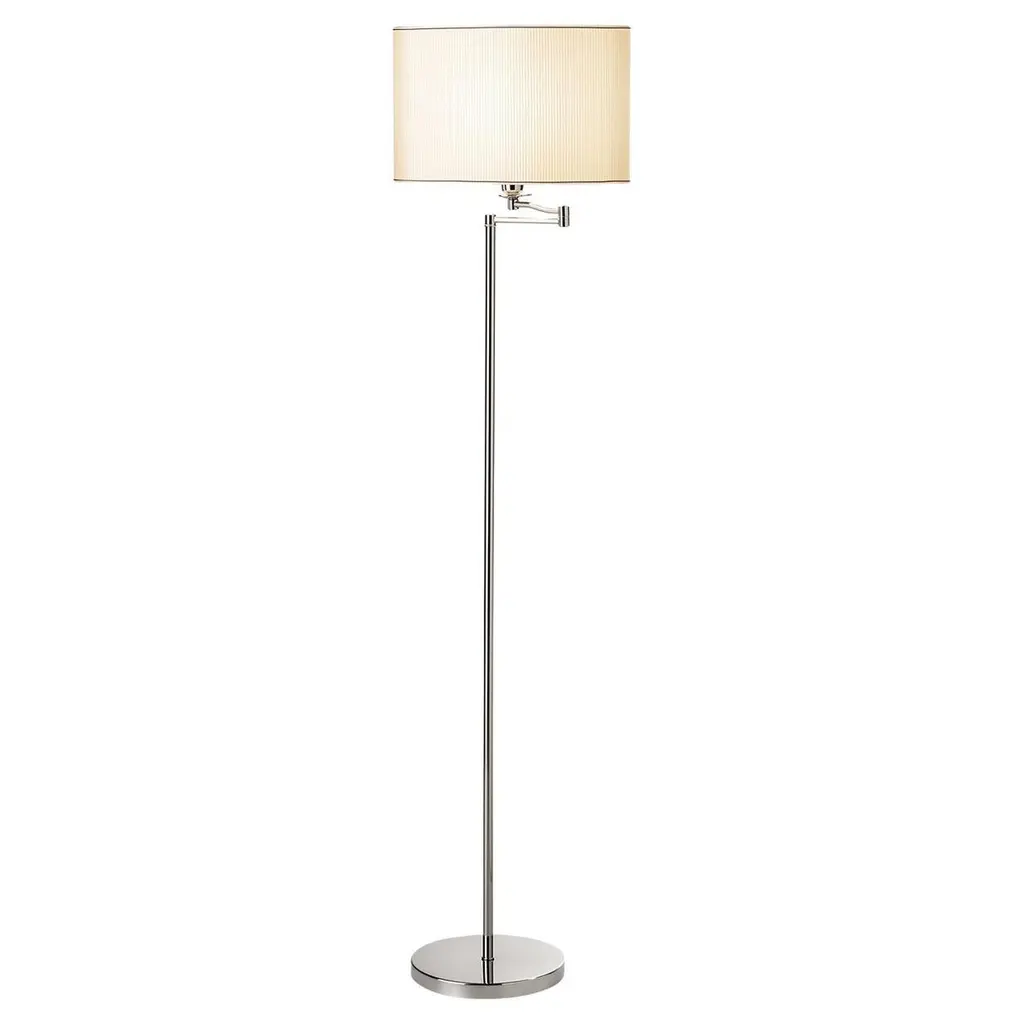 Part of a collection of three complementary lighting styles, the Nuguria Floor Lamp is designed by Michele Bönan for Estro. The brass floor lamp, perfect for traditional living rooms, is designed with a swinging arm, making it perfect for reading corners, and is completed by a classic pleated lampshade. \nBulb: 1 x max 100W E28.