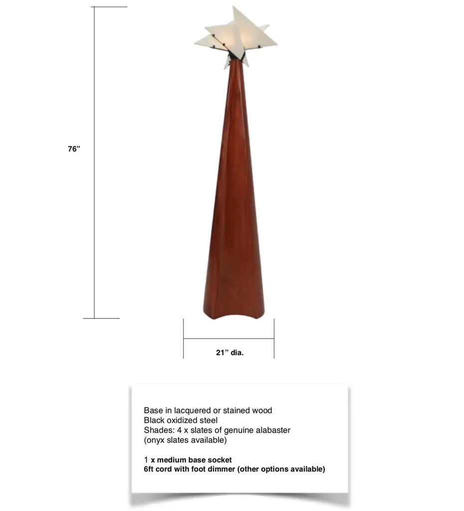Nun 'Curve' Alabaster Floor Lamp in the Manner of Pierre ChareauThe Nun 'Curve' floor lamp is the single sided carved wood base version of the Nun floor collection. Handcrafted in Los Angeles in the workshop of noted French designer and antiques dealer Denis de le Mesiere, who meticulously pays homage to the work of Pierre Chareau with scrupulous attention to detail and materials. Executed in the highest quality solid European alabaster mounted with black oxidized steel brackets onto a light rosewood finished maple base with satin finish. Also available in other wood finishes. This ultra-refined design adds a sculptural element and focal point of incomparable beauty.Price is per item. Available to order in unlimited quantities as well as in table and desk lamp versions, please see our separate listings. This listing is for the 'Nun Curve' floor lamp with black hardware and maple wood.Ships from Los Angeles. In-stock lead time 8-10 weeks. Out of stock lead time up to an additional 8 weeks or more. Inventory availability subject to change. For time-sensitive orders, kindly contact us prior to purchasing.Accommodates one standard medium base US bulb and is compatible for hardwiring with US electrical junction boxes. TCP Dimmable 2700K G-16 Globe Frosted LED Bulb, E26 Base recommended. Not UL listed, but recommended UL listing available from authorized 3rd party vendor upon request for an additional fee.Please note that alabaster varies from item to item due to the organic nature of the material.Made to order. All sales are final.