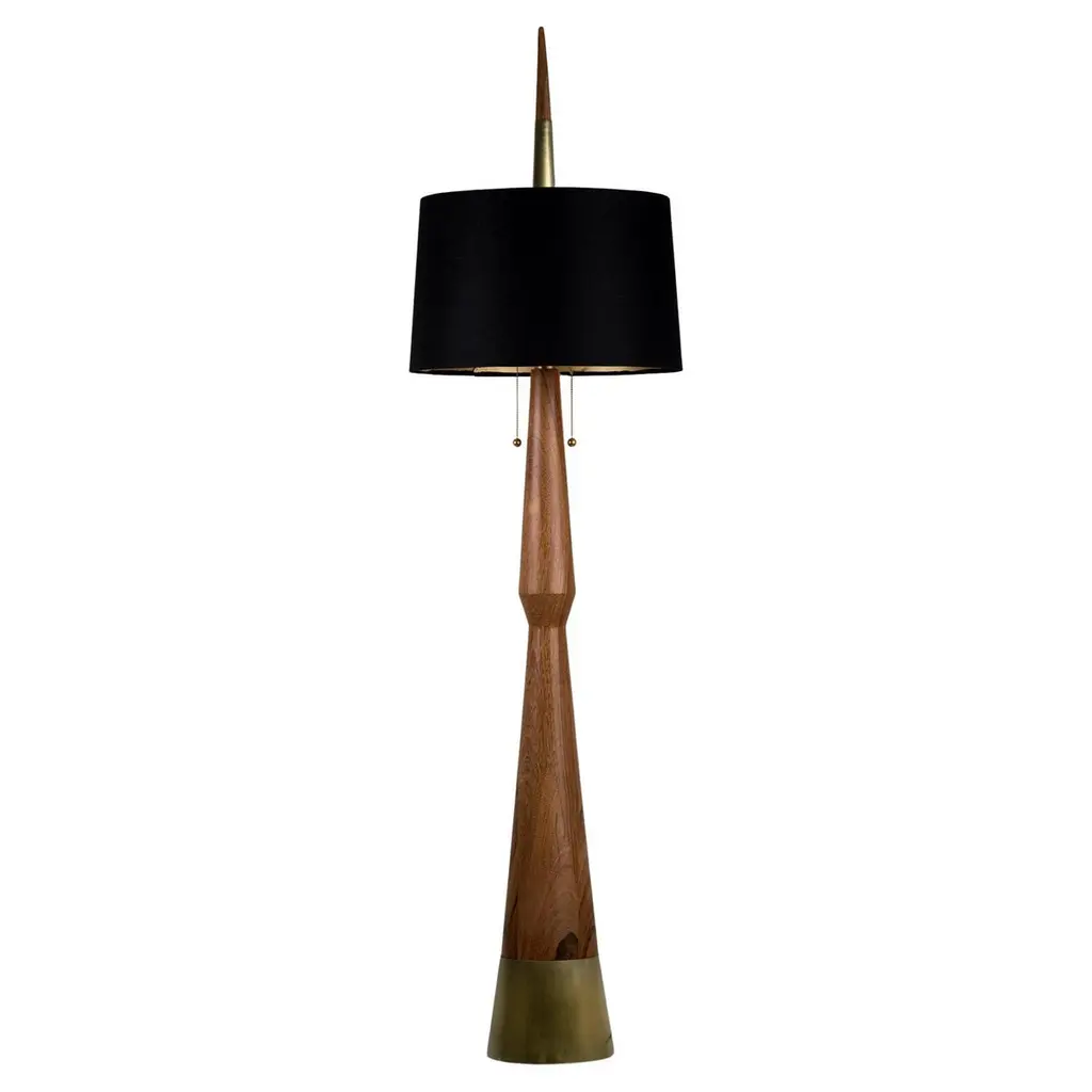 The Obelisk Floor Lamp brings a sculptural, stoic and singular style to the world of modern home lighting. Its geometric, sharp angular lines form a supportive pedestal base leading up and into a round drum shade. A rich chestnut finish beautifully pairs with its white linen shade for a truly complementary design. Soft glowy light brighens space from this artistically crafted floor lamp.