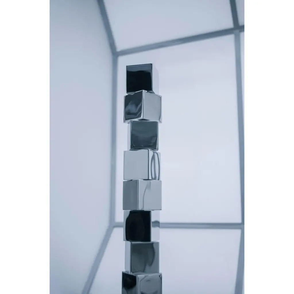 Ocean flame floor lamp by The ShawDimensions: D24 x W 24 x H 180 cmMaterials: Stainless SteelWeight: 13 kgAll our lamps can be wired according to each country. If sold to the USA it will be wired for the USA for instance."Ocean Flame" is the theme of THESHAW's 2019 series. This time, Shaw wants to present a more pure visual memory. Time goes back many years ago, the sky outside the window of the old foreign building in her hometown, sometimes the blue sky, sometimes the sunset, such as the poetic space, strong and multi-level presentation in the visual space is an unforgettable illusion. Shaw extracted this pure visual experience, attaching it to the new series of installation, stainless steel and optical glass are both fused and separated, standing alone against each other. This special vision presents a warm and cold memory atmosphere full of a sense of weight.THESHAW is the private studio brand created by Shaw Liu in 2017. It aims to shape new styles in aesthetic and conception with modern perspectives using ordinary materials and finest craftsmanship, to describe the spirit and artistry of the products in the frame of freedom and minimalism, and to create exquisite and contemporary visual installation products, while embodying her understanding of the divine thinking and spiritual world.Shaw Liu created the private art studio and the brand “THESHAW” in 2017.The artist has been creating new mannerism works combining modern aesthetic perspectives with various thinkings. The brand is a fusion of future, spatial and three-dimensional elements, and spares no effort to express the feeling of divinity, spirituality, and religion.