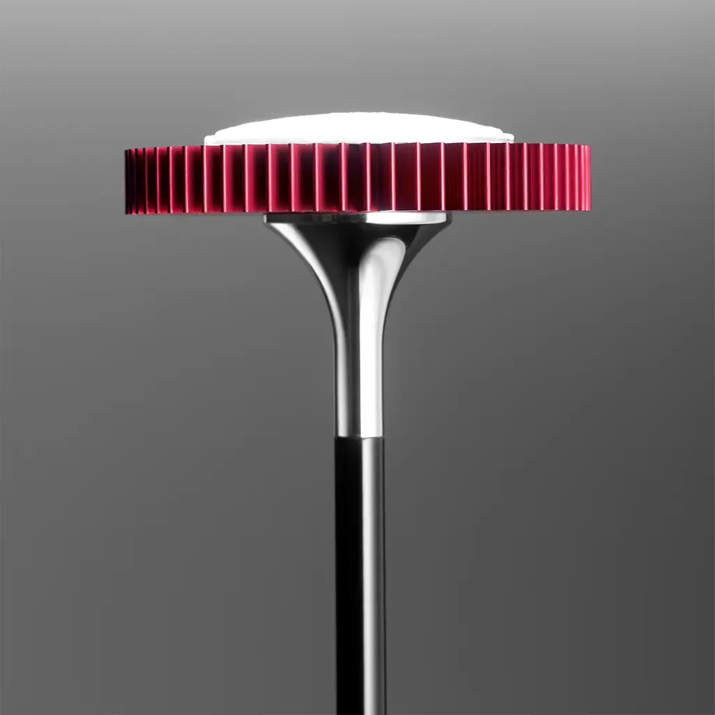 Introducing Ocio Terra, a floor lamp that is both simple and essential, yet rich and refined, like a precious jewel. Its unique design evokes different images: a flower's corolla, a small asteroid, a spaceship, or even a comic book drawing. Despite its compact size, it has a striking visual impact. The lamp provides indirect light and includes a dimmer for adjustable brightness. It is part of a larger collection that also features a suspension version and a wall lamp.