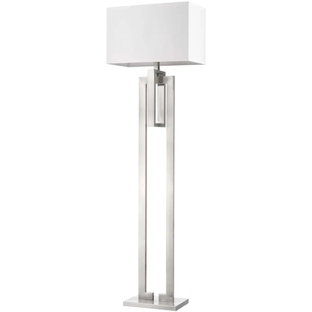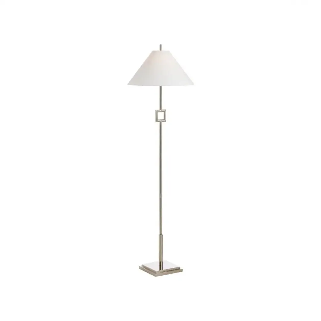 Reward your taste for the dramatic with the handsome silhouetting of the Oculus Floor Lamp from Robert Abbey. It stands tall in a sleek metal column and hypnotizes you in a circular oculus motif at the top. A marble base elevates the piece like a timeless pedestal; its swirling veins bring an artisanal quality to the clean colors of the column and shade. Its rectangular drum shade sweeps overhead, ushering light out in a bountiful glow.