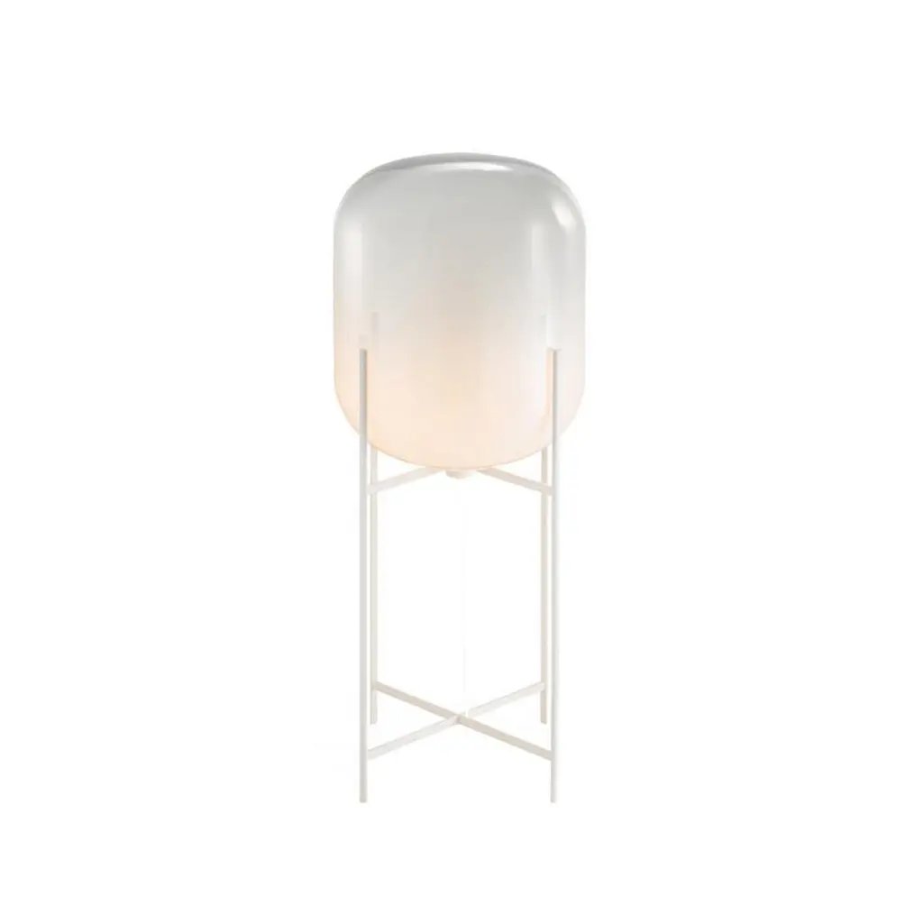 Oda in between moonlight white white floor lamp by PulpoDimensions: D45 x H111.2 cmMaterials: handblown glass coloured and steel.Also available in different finishes. A slender base hugs a bulbous form. An industrial motif softened by the gentle curves of handblown glass. The oda series of table and floor lights reference the stilted forms of silos, furnaces and water towers of a bygone age. A warm glow brings this industrially charged aesthetic into a softer interior setting.All our lamps can be wired according to each country. If sold to the USA it will be wired for the USA for instance.Pulpo is a design editor for high-end products in the home sector.Design is our passion. Art is our engine. We are fascinated by the craft of the ceramic and glassblowing workshops and are guided by the rough aesthetics of these unique pieces.Pulpo’s philosophy goes back to the idea of ??the “carte blanche”. Our designers and artists develop their designs freely and experimentally. A variety of materials and a weakness for structures are our strengths.The headquarters of pulpo is in Weil am Rhein, near the Swiss border. Consisting of the creative and sales department, warehouse and logistics, this is the think tank for our artists and designers. pulpo’s dealer network extends far beyond Weil am Rhein – from Iceland and Dubai to Australia.Pulpo is movement – is possibility – is passion.In 2006, pulpo was founded by Ursula and Patrick L’hoste as a design brand at the interface between shape and material. pulpo’s conception is to edit lighting, furniture and accessoires on editor’s choice. The company’s focus is to conduct up-and-coming designers and selected manufacturers, using the nature of material’s to form the score. Materials such as ceramics, stone and especially glass, which is pulpo’s primary focus since 2013.