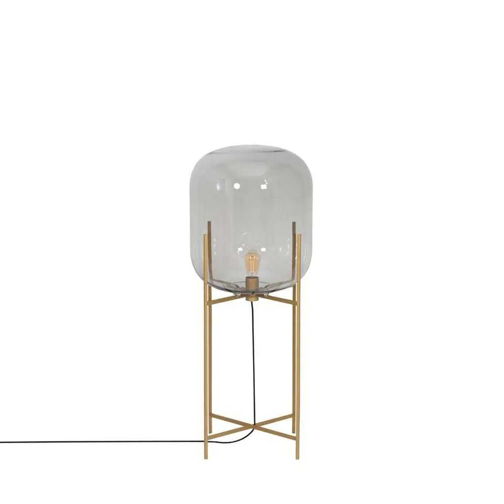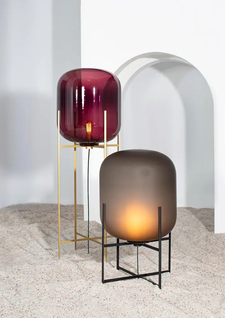Oda in between steel grey brass floor lamp by PulpoDimensions: D45 x H111.2 cmMaterials: handblown glass coloured and steel.Also available in different finishes.A slender base hugs a bulbous form. An industrial motif softened by the gentle curves of handblown glass. The oda series of table and floor lights reference the stilted forms of silos, furnaces and water towers of a bygone age. A warm glow brings this industrially charged aesthetic into a softer interior setting.All our lamps can be wired according to each country. If sold to the USA it will be wired for the USA for instance.Pulpo is a design editor for high-end products in the home sector.Design is our passion. Art is our engine. We are fascinated by the craft of the ceramic and glassblowing workshops and are guided by the rough aesthetics of these unique pieces.Pulpo’s philosophy goes back to the idea of ??the “carte blanche”. Our designers and artists develop their designs freely and experimentally. A variety of materials and a weakness for structures are our strengths.The headquarters of pulpo is in Weil am Rhein, near the Swiss border. Consisting of the creative and sales department, warehouse and logistics, this is the think tank for our artists and designers. pulpo’s dealer network extends far beyond Weil am Rhein – from Iceland and Dubai to Australia.Pulpo is movement – is possibility – is passion.In 2006, pulpo was founded by Ursula and Patrick L’hoste as a design brand at the interface between shape and material. pulpo’s conception is to edit lighting, furniture and accessoires on editor’s choice. The company’s focus is to conduct up-and-coming designers and selected manufacturers, using the nature of material’s to form the score. Materials such as ceramics, stone and especially glass, which is pulpo’s primary focus since 2013.