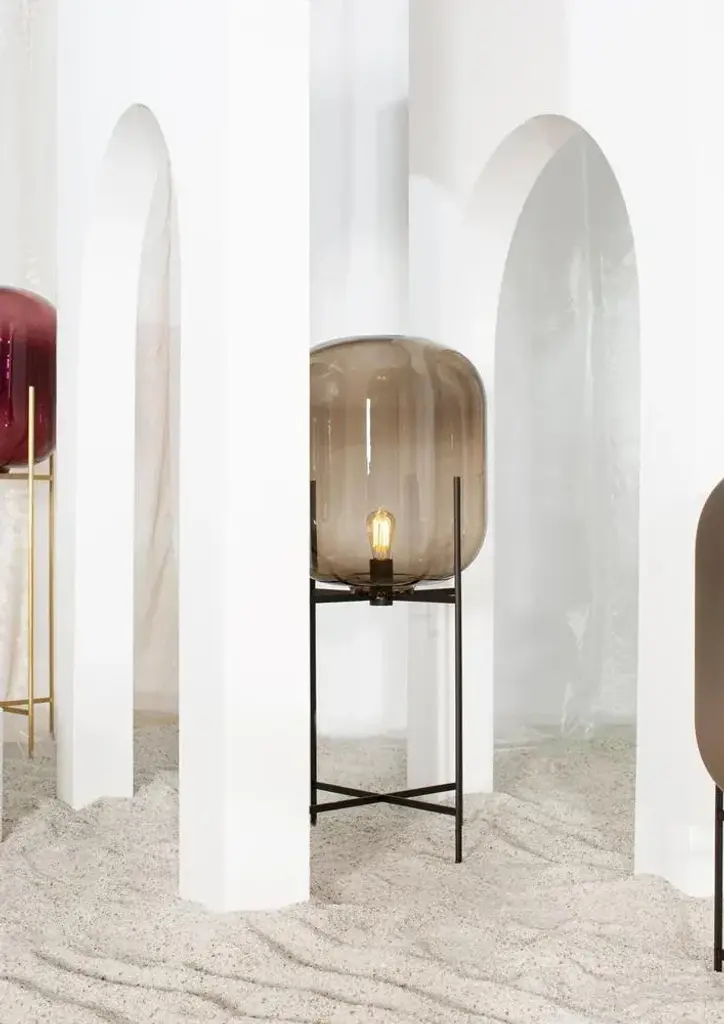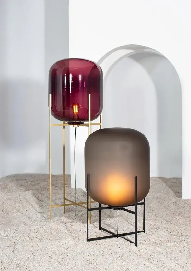 Oda medium aubergine black floor lamp by pulpo dimensions: d45 x h80 cm materials: handblown glass coloured and steel. Also available in different finishes. A slender base hugs a bulbous form. An industrial motif softened by the gentle curves of handblown glass. The oda series of table and floor lights reference the stilted forms of silos, furnaces and water towers of a bygone age. A warm glow brings this industrially charged aesthetic into a softer interior setting. All our lamps can be wired according to each country. If sold to the usa it will be wired for the usa for instance. Pulpo is a design editor for high-end products in the home sector. Design is our passion. Art is our engine. We are fascinated by the craft of the ceramic and glassblowing workshops and are guided by the rough aesthetics of these unique pieces. Pulpo’s philosophy goes back to the idea of ??the “carte blanche”. Our designers and artists develop their designs freely and experimentally. A variety of materials and a weakness for structures are our strengths. The headquarters of pulpo is in weil am rhein, near the swiss border. Consisting of the creative and sales department, warehouse and logistics, this is the think tank for our artists and designers. Pulpo’s dealer network extends far beyond weil am rhein – from iceland and dubai to australia. Pulpo is movement – is possibility – is passion. In 2006, pulpo was founded by ursula and patrick l’hoste as a design brand at the interface between shape and material. Pulpo’s conception is to edit lighting, furniture and accessoires on editor’s choice. The company’s focus is to conduct up-and-coming designers and selected manufacturers, using the nature of material’s to form the score. Materials such as ceramics, stone and especially glass, which is pulpo’s primary focus since 2013. up to 250v (europe/uk standard).