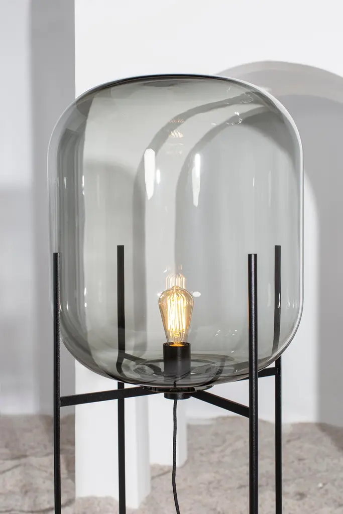 Oda medium steel grey black floor lamp by PulpoDimensions: D45 x H80 cm.Materials: handblown glass coloured and steel.Also available in different finishes. A slender base hugs a bulbous form. An industrial motif softened by the gentle curves of handblown glass. The oda series of table and floor lights reference the stilted forms of silos, furnaces and water towers of a bygone age. A warm glow brings this industrially charged aesthetic into a softer interior setting.All our lamps can be wired according to each country. If sold to the USA it will be wired for the USA for instance.Pulpo is a design editor for high-end products in the home sector.Design is our passion. Art is our engine. We are fascinated by the craft of the ceramic and glassblowing workshops and are guided by the rough aesthetics of these unique pieces.Pulpo’s philosophy goes back to the idea of ??the “carte blanche”. Our designers and artists develop their designs freely and experimentally. A variety of materials and a weakness for structures are our strengths.The headquarters of pulpo is in Weil am Rhein, near the Swiss border. Consisting of the creative and sales department, warehouse and logistics, this is the think tank for our artists and designers. pulpo’s dealer network extends far beyond Weil am Rhein – from Iceland and Dubai to Australia.Pulpo is movement – is possibility – is passion.In 2006, pulpo was founded by Ursula and Patrick L’hoste as a design brand at the interface between shape and material. pulpo’s conception is to edit lighting, furniture and accessoires on editor’s choice. The company’s focus is to conduct up-and-coming designers and selected manufacturers, using the nature of material’s to form the score. Materials such as ceramics, stone and especially glass, which is pulpo’s primary focus since 2013.