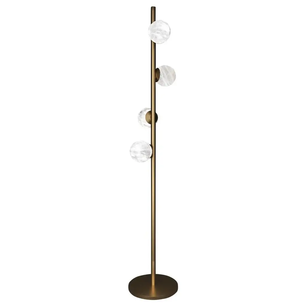 Ofione bronze floor lamp by alabastro italiano dimensions: d 50 x w 50 x h 170 cm. Materials: white alabaster and bronze. Aall our lamps can be wired according to each country. If sold to the usa it will be wired for the usa for instance. Ofione was the first king of the titans and the heavens, his figure is nevertheless shrouded in mystery and little is known of his history. His grandeur was always associated with that of his wife eurinome, and his life was characterized by this indissoluble bond. Likewise, this series is made up of horizontal and vertical lines that gently intertwine with precious alabaster spheres. After years of experience in the family business, which specializes in design and lighting, riccardo and alberto ongarato found the brand alabastro italiano. Each project is conceived and designed to give a strong sign of recognizability and uniqueness. The use of precious materials such as alabaster, brass, leather and blown glass, worked by the skilful hands of our craftsmen, are combined to create “timeless” objects. From the depths of the earth to the light of the sun. up to 250v (europe/uk standard).