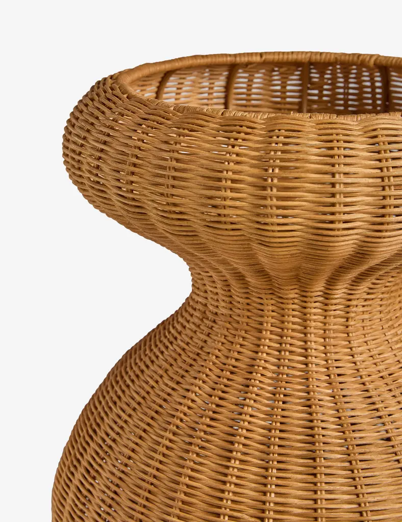 The Olivera lamp pairs rich texture with a fluid silhouette for sculptural warmth. Its sinuous form is woven from wicker for an organic touch with artful appeal. This floor lamp brings a modern edge to any corner or reading space.