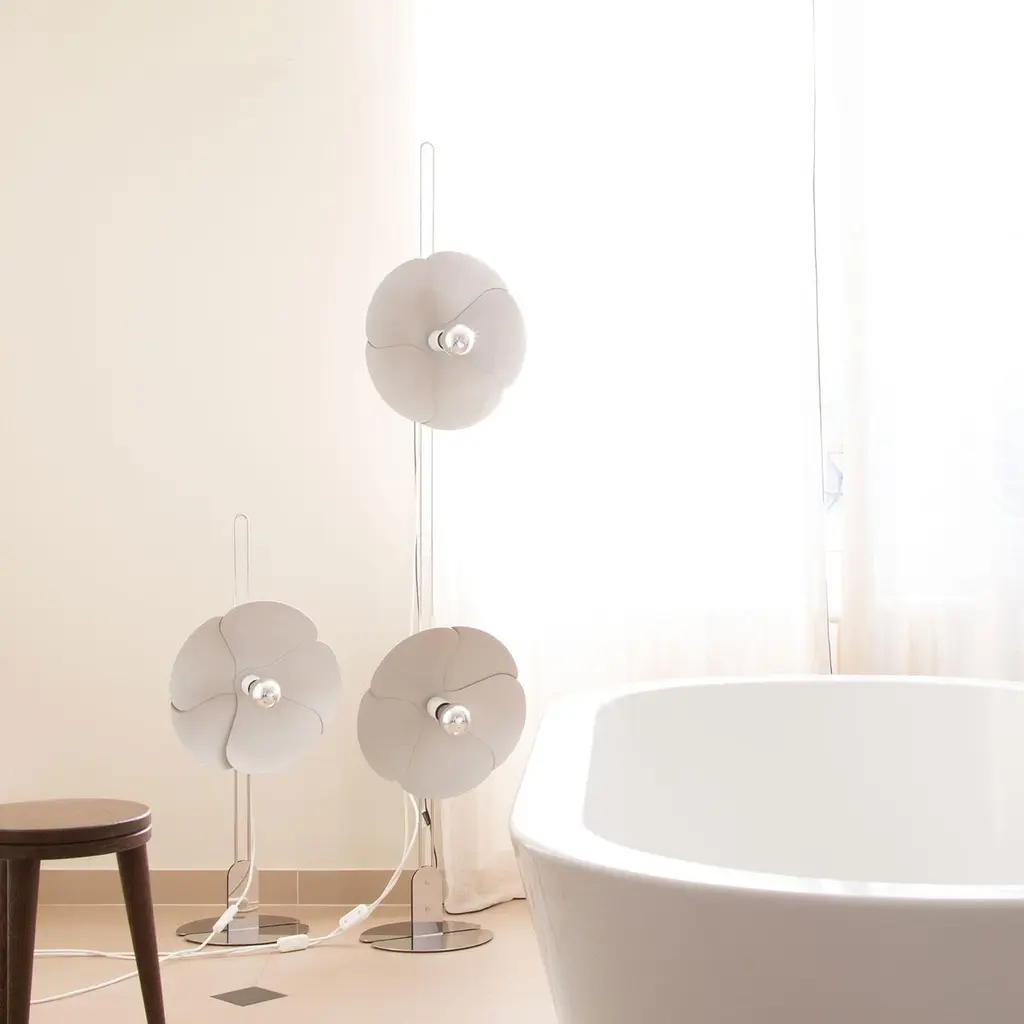 Olivier Mourgue model 2093-150 floor lamp for DisderotOriginally designed in 1969, this sculptural floor lamp is a newly produced numbered edition with authentication certificate made in France by Disderot with many of the same small-scale manufacturing techniques and craftsmanship as the original run. In 1967, Olivier Mourgue invented a flower shaped lighting device, made of aluminum petals fixed on two chromed metal wires, for sconces, ceiling lights and standing lamps. Mourgue used the silver-capped bulb, which was new at the time, to produce glare-free lighting from the flower shade.Price is per item. Professionally modified for US electrical. CE listed, accommodates two 75 watt max LED equivalent medium base e27 bulb. Comes in manufacturer's box with “Certificate of Authenticity”. Third flower available for an additional fee.In-stock lead-time 7-8 weeks. Out of stock can take up to 12 weeks or more. Stock availability can change at any time. Made to order.