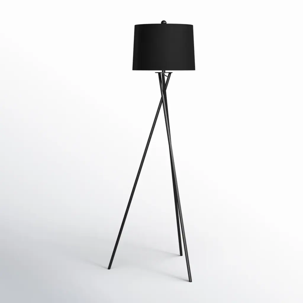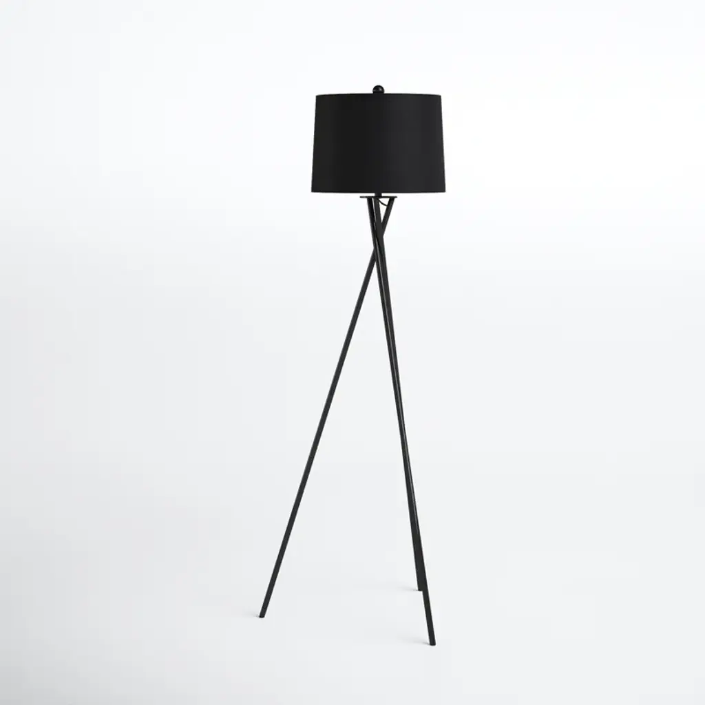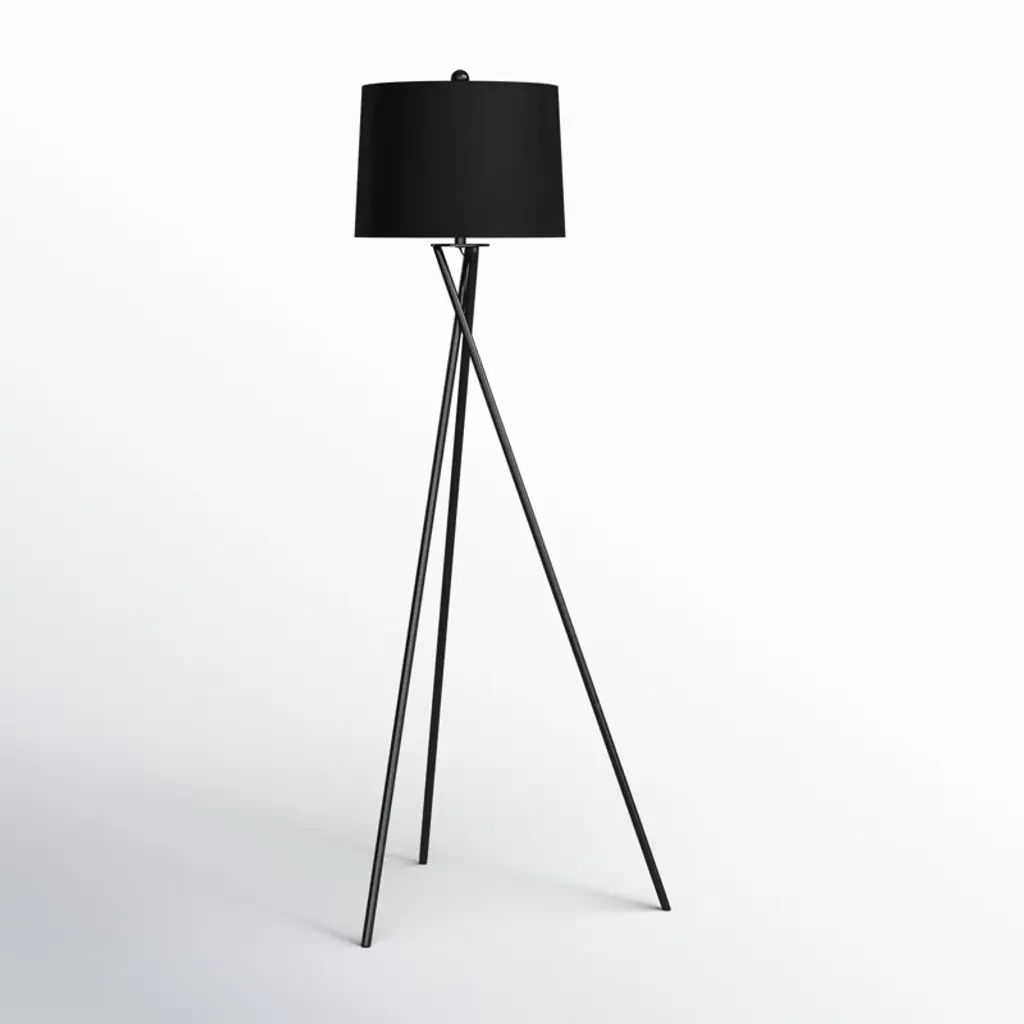 Inspired by classic photoshoot lighting, this tripod floor lamp has a minimalist, streamlined style that pairs well with living rooms of all styles. Made from metal, it sits on a black-finished base with sleek tripod legs. Up top, the matching black barrel shade is crafted from 100% cotton and filters light from a single 9W bulb (included). This lamp measures 61.5” overall and works well next to sofas, in the spare corner of your bedroom, and much more.