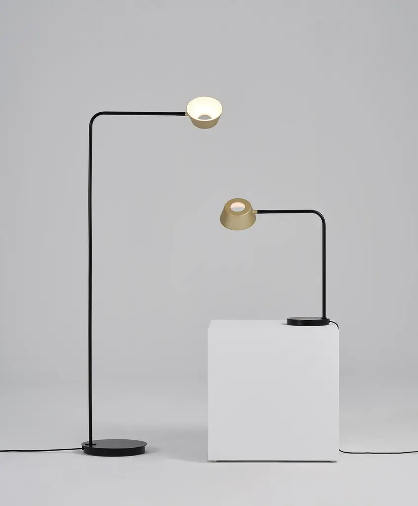 The OLO Table and Floor Lamps are the newest additions to the OLO Family. The hollow rotatable lamp shade is embedded with cutting-edge design, offer a high quality CRI 90 Color Rendering light output. Available in two colorways, the OLO Floor lamp has an on/off switch on the cord. The lamp is designed with a simplistic and streamline structure, allowing a high degree of functionality and versatility for different settings.Material:Steel, PPColor:Matt blackMatt black + champagne gold shadeLight Source:LED 6.5W 3000K CRI>90 415lmSize:L 19.6? x W 9.3? x H 48.6?Feature:on/off switch.