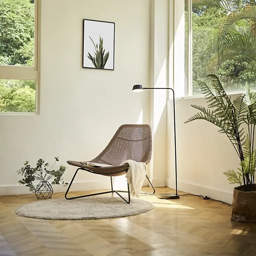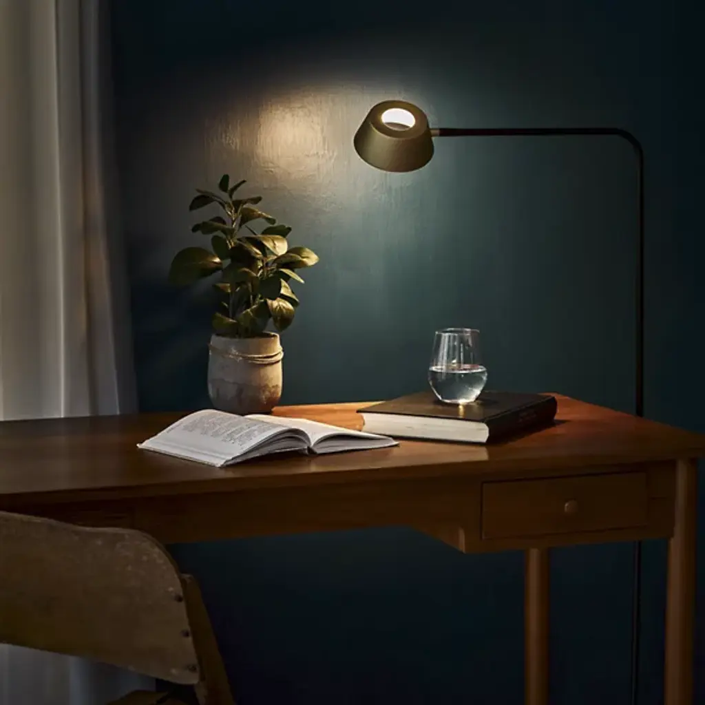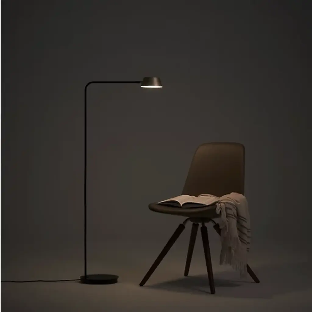 The Olo LED Floor Lamp by Seed Design is a simple yet sophisticated addition to rooms. With a clean, minimal silhouette, this design was created with functionality in mind. A round base anchors this lamp, and a streamlined, slender arm reaches up, neatly curving to support a shade that embraces a cutting-edge design that utilizes a hollow build. Open at either end, this rotatable lampshade is embedded with glare-free LED lighting that can easily be oriented to bring a bright touch in the direction you need it. This handsome lamp complements a wide range of spaces, and the smartly designed, adjustable lampshade makes it an ideal choice for a reading corner or placed near a desk to both visually frame an area and lend it some welcoming illumination.