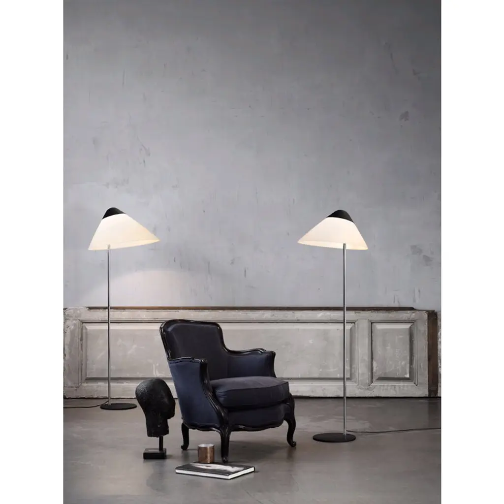 Carl Hansen & Søn's Opala Midi was designed by Hans J. Wegner as part of the Opala collection, originally created for Hotel Scandinavia in Copenhagen in the 1970s. In addition to hotels, Opala luminaires have since been selected as lighting for offices, homes and various public spaces, such as Churchill College at the University of Cambridge. The Opala Midi floor lamp is made of high-quality materials: its shade is made of special impact-resistant acrylic, with the “hat” of the shade in painted aluminum, and the base in painted and chromed steel. The shape of the luminaire is futuristic, but not too much so – at the same time, the form is simple and sympathetic. Opala Midi can be placed in the bedroom or office as a reading light or in the corner of the living room to create atmospheric lighting in the space. This charming lamp was originally part of Pandul's collection but has been produced by Carl Hansen & Søn since 2024.