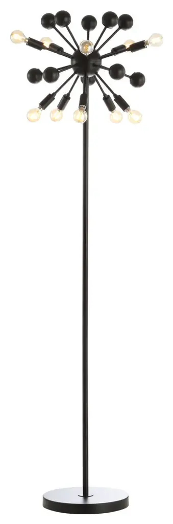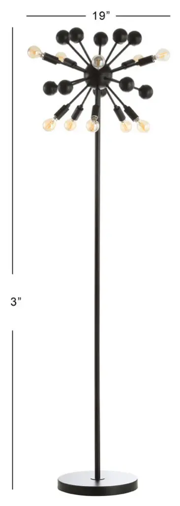 Create a mid-century mood with the dramatic black silhouette of our retro-modern floor lamp. Inspired by industrial design and atomic-age style, the sputnik lamp is both lighting and sculpture. It features 10 vintage-style LED bulbs and a foot-step switch. The black satin metal finish is complemented by a silk-wrapped cord. Features:• Finished in black, the metal body would suit any color palette• Easy to use foot-step switch• Beautiful to display or easy to conceal: the cord is wrapped in black silk• Eco-friendly 2W LED bulbs included• Takes 10 bulbs and compatible with any 5W LED or 25W TYPE "B" or 9W CFL• Color: Black• Body Material: Metal• Includes: One (1) lamp• Assembly RequiredDimensions:• Lamp: 63 inches high x 19 inches wide x 19 inches deepAbout us:You see a lamp.We see a decorative work of art.A perfectly curved shade casts a dramatic shadow on a floor. A silk cord you never want to hide. Compatible with LED lightbulbs: as easy on the environment as they are on the eyes. The JONATHAN Y Lighting collection considers every detail from impeccably sourced materials to designer styling. And our prices are so attractive, we''ve transformed a functional necessity into a fashion accessory.JONATHAN Y Lighting - a fashion revolution in home decor.