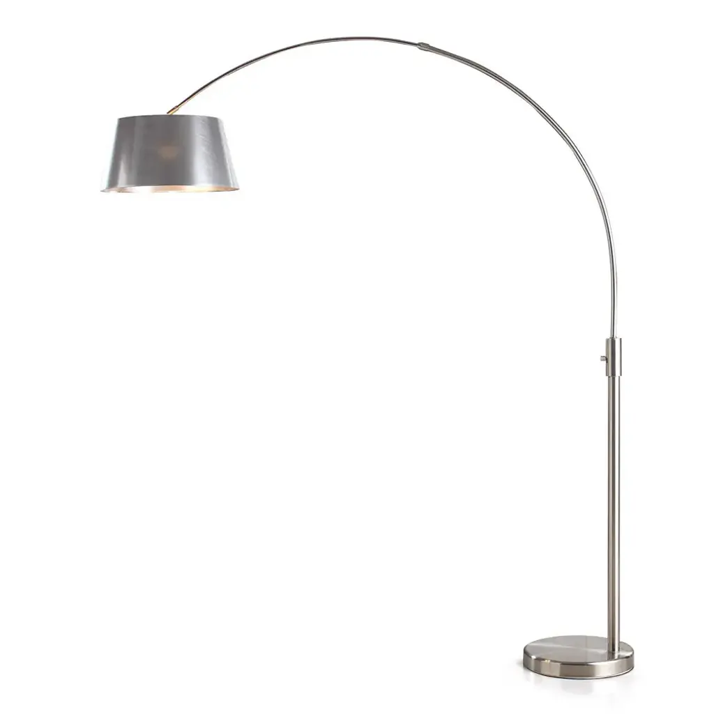 Orbita 82-Inch Brushed Nickel Retractable Arch Dimmable Floor Lamp With Led Bulb And Silver Shade - Brushed Nickel Finish With Matching Pvc Shade