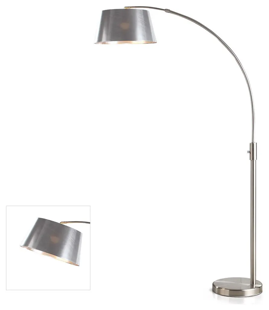 HomeTREND design, the ORBITA arch floor Lamp brings a simple, solid and stylish illuminating statement, featuring adjustable arc and easy reach dimmer rotary switch with bonus free dimmable LED bulb fits perfectly in open space, behind sofa or personal couch.Bulb Type: A19 DimmableBulbs IncludedWattage: 100W Incandescent or equivalent LED