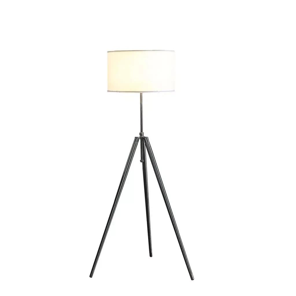 The Mid-Century Height Adjustable Two Tone Tripod Floor Lamp creates the perfect set for the urban design that is your style. A trio of sturdy two tone brush silver/silver chrome legs metal legs creates the base for this floor lamp. The score of your lamp is accented by a drum - the white cotton/linen uno-fitter drum shade, that is. This lamp would be great in a living room space, bedroom space, as well as any room in your home or office that would look finished with a modern lighting accent. Includes an inline Step-On On/Off switch for easy on/off located on the Silver Cord, and uses a single 100-watt Type A bulb, CFL and LED Light compatible. Try contemporary on for size with this table lamp's ultra-cool tripod design. Two tone Brushed silver tone/polished chrome stand is a striking complement. This Mid-Century Table Lamp creates a unique effect and a multi-function for adjusting the height of your choice to your home environment and has a very distinctive feature. It features an adjustable height size from 47" - 64"H defined by unique easy access step on on/off switch. This lamp adds a creative sensation to minimalistic furniture.
