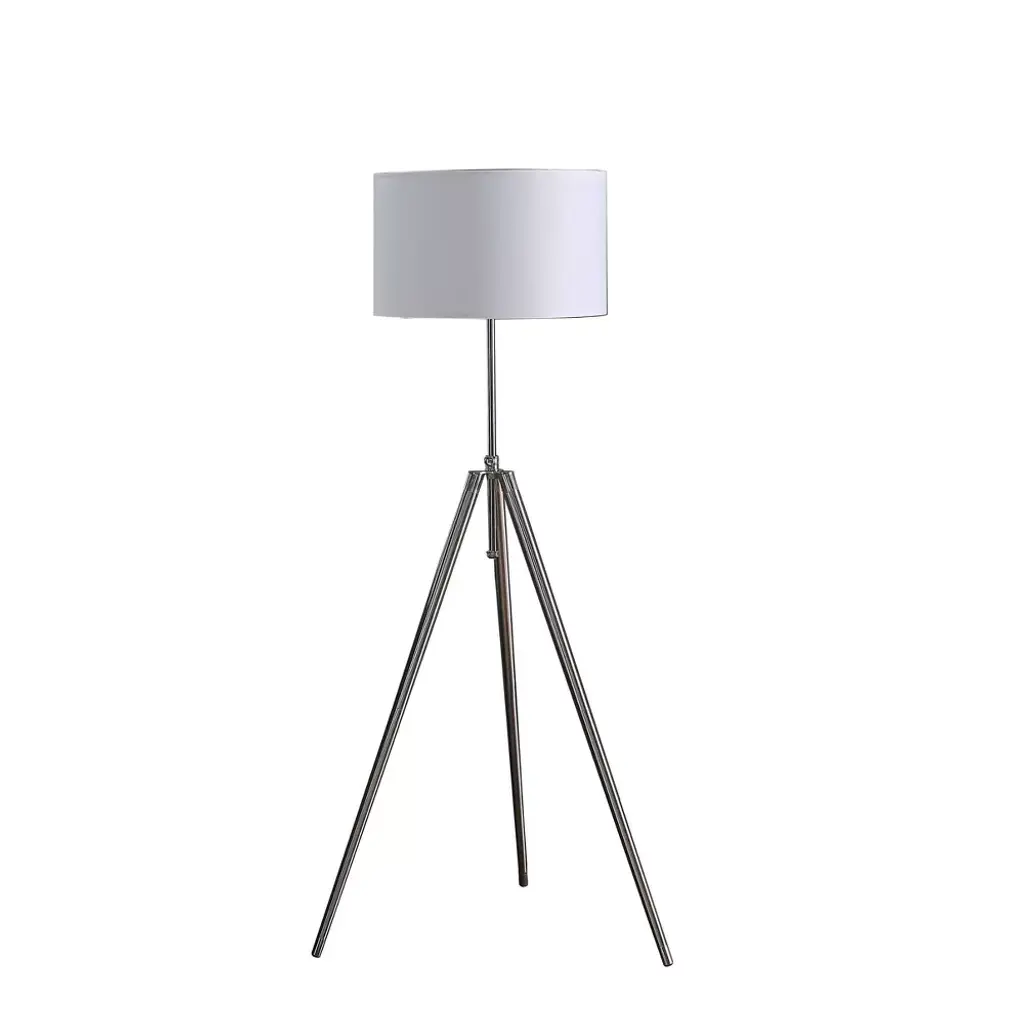 Ore International 64"x47" Mid-century Adjustable Tripod Metal Floor Lamp Chrome/silver: Urban Design, Drum Shade, Inline Switch