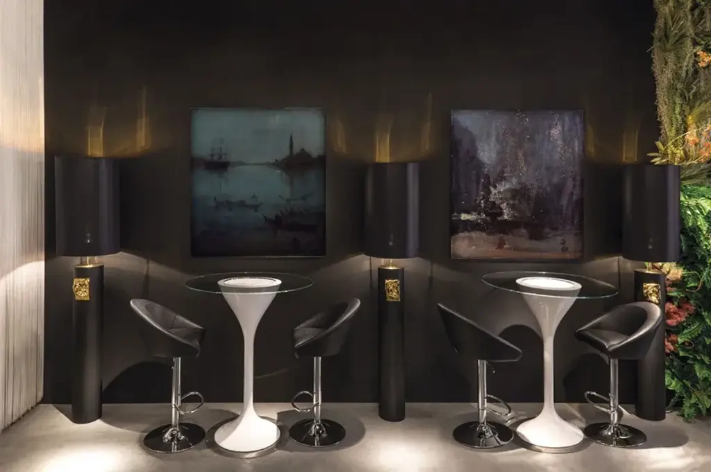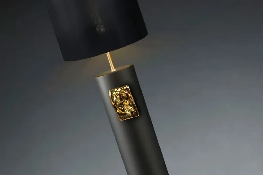Handmade Italian ceramic floor lamp "David by Michelangelo" Ear. Matt black with gold 24K insert, interior and exterior white lampshade. 100% Made in Italy. Connection E27 - 50W max.