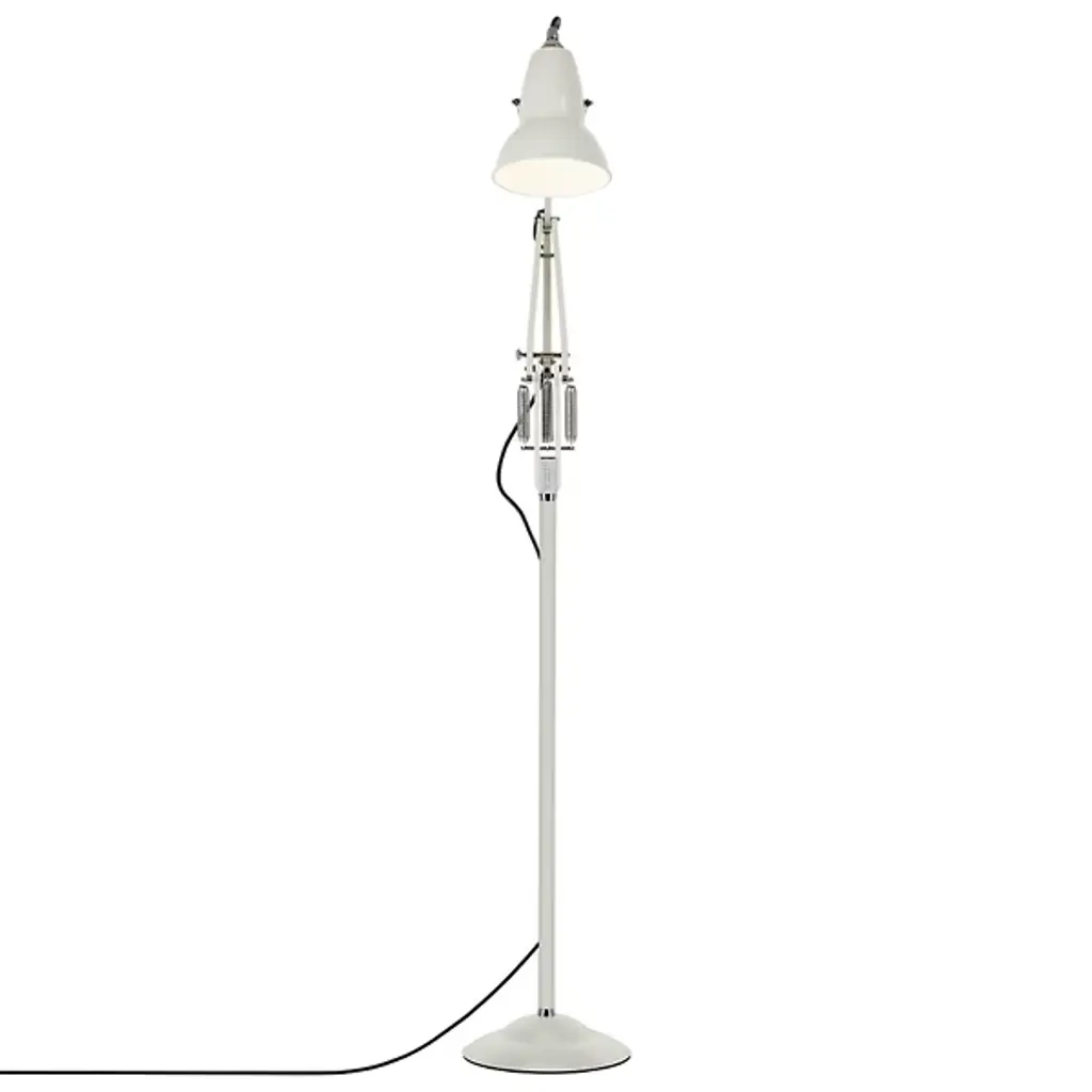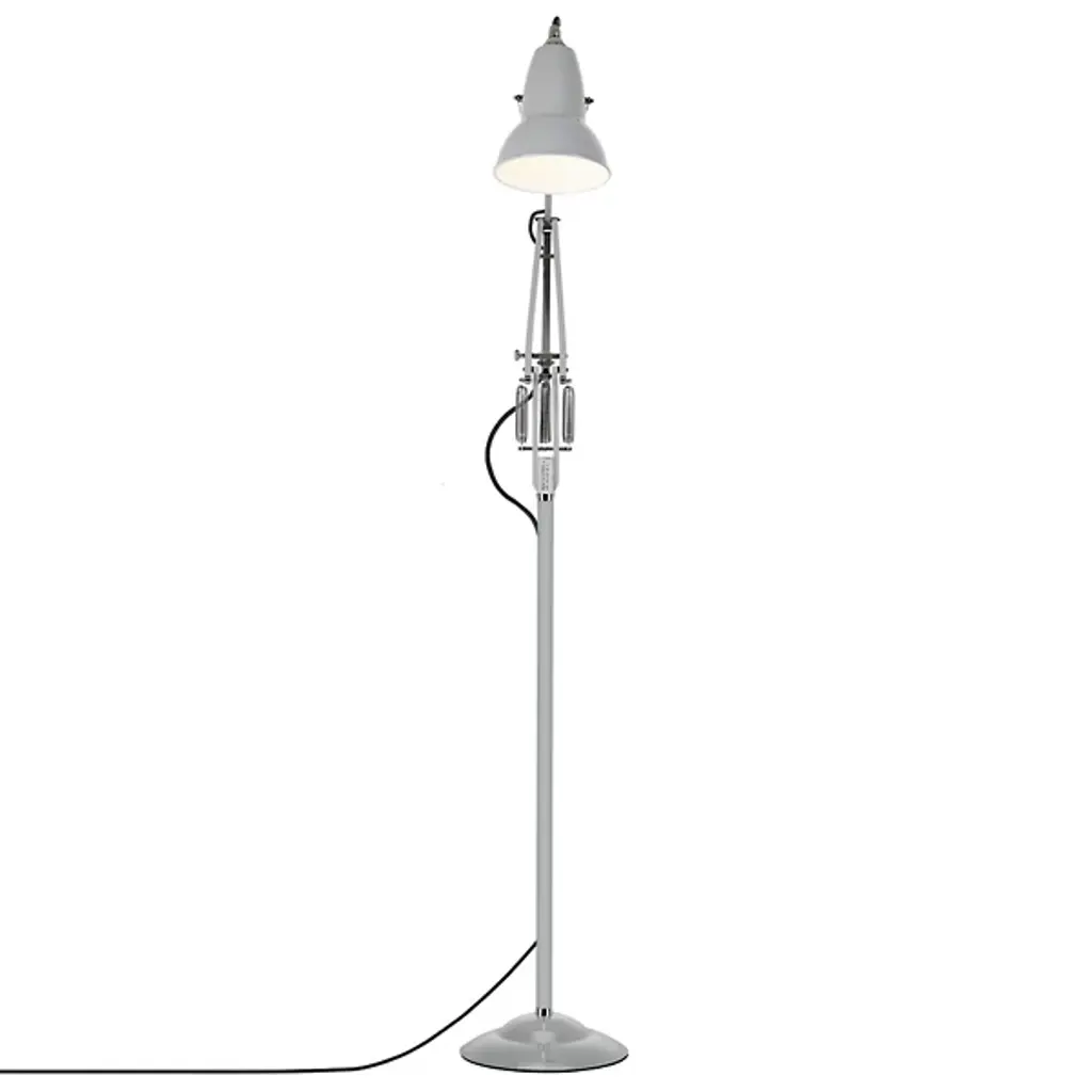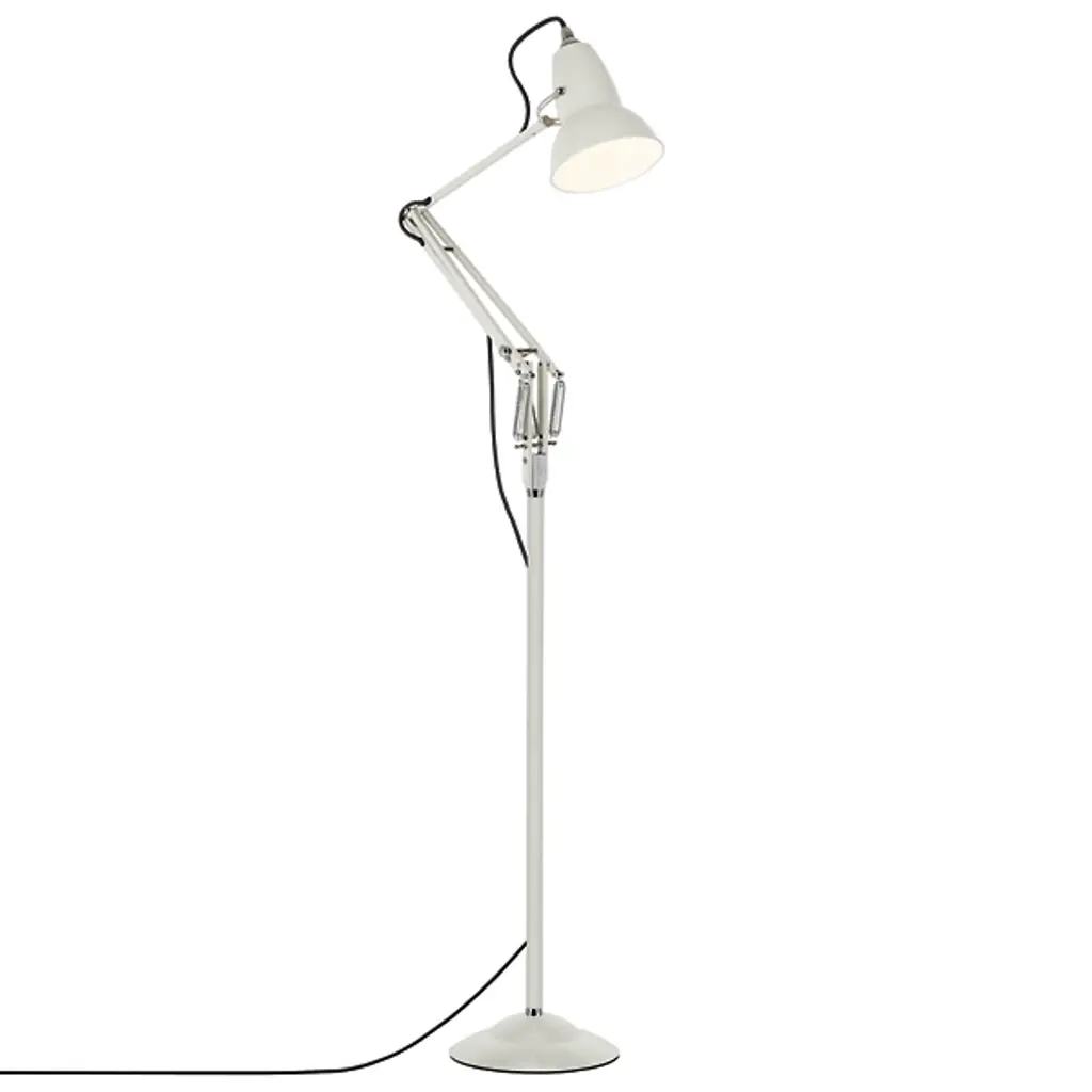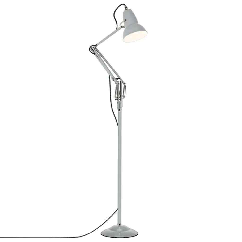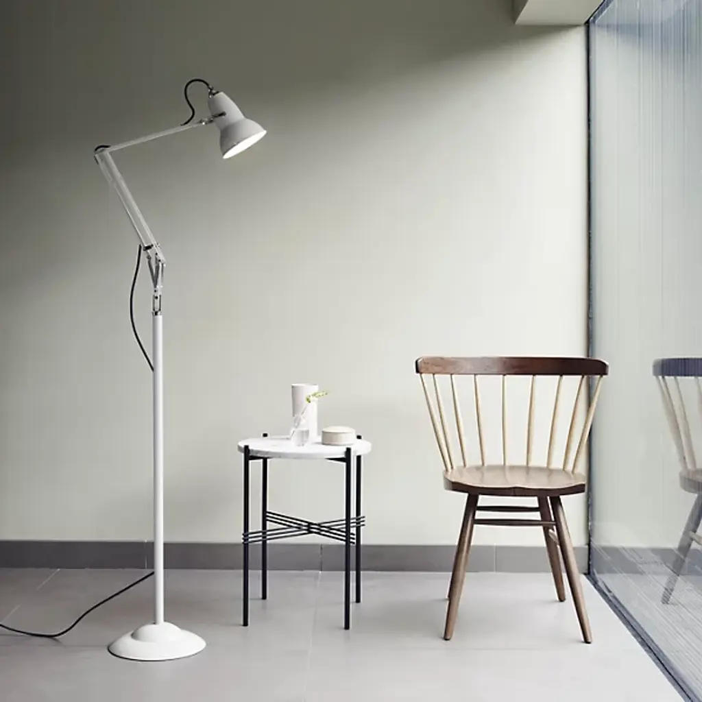 The Original 1227 Floor Lamp from Anglepoise provides a clean modern-industrial look to its surroundings. Engineered by George Carwardine, a 20th-century car designer, the lamp’s then-unique spring design offers excellent flexibility paired with unparalleled stability. A steel pole ascends from a buckler-style base, sweeping upward into a dual-articulated arm accentuated with classic chrome-plated aluminum arms. A flared metal shade is held over the lamping at the end, creating a generous spot of direct light perfect for reading or daily tasks with enough ambiance to light up the rest of the room.