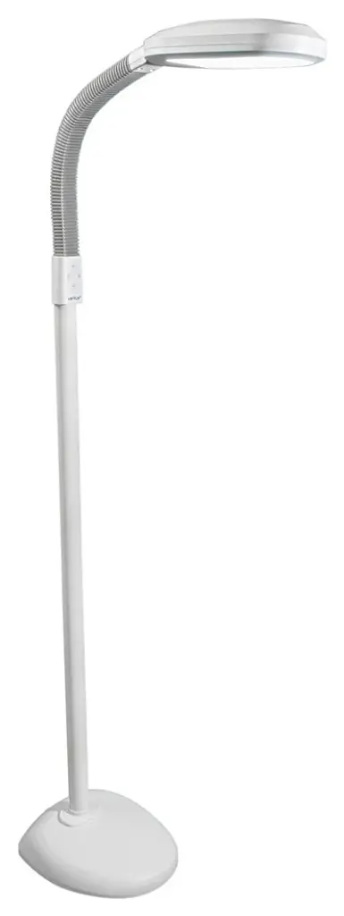 Discover the difference that natural spectrum LED lighting can make to your life with the LED Floor Lamp! Using a long-lived LED bulb, the Floor Lamp delivers state-of-the-art natural spectrum lighting with a stylish and modern design that features an adjustable goose neck. With over a million units sold, our floor lamp helps you work smarter. Perfect for reading, working, or craft projects, the Floor Lamp is 48 inches tall and features energy-efficient LEDs, so you''ll never have to worry about replacement bulbs.Natural spectrum illumination accesses specific sections of the light spectrum to mimic the characteristics of natural daylight. Gentler on the eyes, the LED light bulb in this lamp provides up to 10,000 hours of strain-free illumination. Too tired to work or study? The Floor Lamp reduces glare and increases visual clarity, lessening your fatigue and allowing you to work or study longer without discomfort. This floor lamp''s natural Spectrum LED lighting mimics natural daylight, while its Optix lens reduces glare to make the light easier on the eyes. With this lamp, you can work or craft longer and more productively.- You can customize the light''s color and intensity for precision while you''re crafting, painting, or reading- The dimming feature softens the brightness to offer you maximum comfort.- LED provides better illumination and truer color representation for your work, reading, and craft projects.- Adjustable goose neck floor lamp- Life in a better light