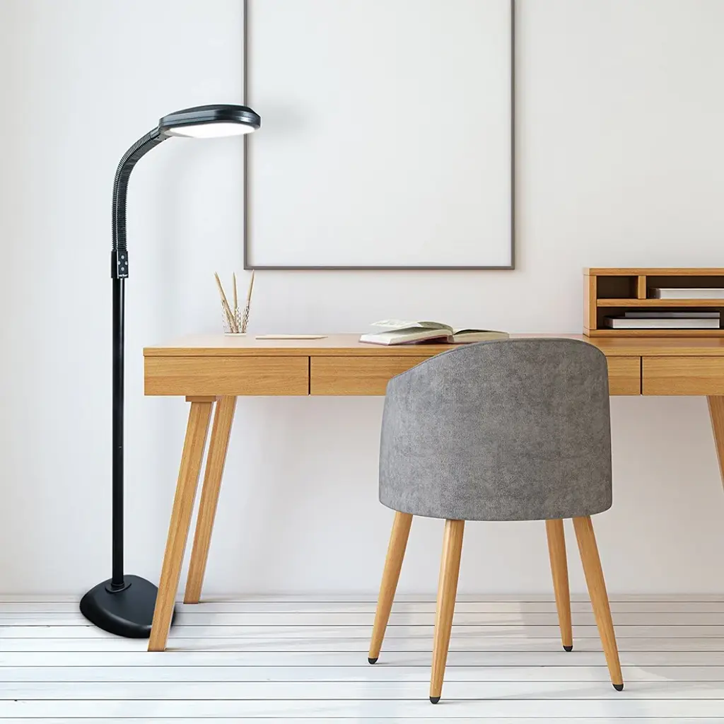 Discover the difference that natural spectrum LED lighting can make to your life with the LED Floor Lamp! Using a long-lived LED bulb, the Floor Lamp delivers state-of-the-art natural spectrum lighting with a stylish and modern design that features an adjustable goose neck. With over a million units sold, our floor lamp helps you work smarter. Perfect for reading, working, or craft projects, the Floor Lamp is 48 inches tall and features energy-efficient LEDs, so you''ll never have to worry about replacement bulbs.Natural spectrum illumination accesses specific sections of the light spectrum to mimic the characteristics of natural daylight. Gentler on the eyes, the LED light bulb in this lamp provides up to 10,000 hours of strain-free illumination. Too tired to work or study? The Floor Lamp reduces glare and increases visual clarity, lessening your fatigue and allowing you to work or study longer without discomfort. This floor lamp''s natural Spectrum LED lighting mimics natural daylight, while its Optix lens reduces glare to make the light easier on the eyes. With this lamp, you can work or craft longer and more productively.- You can customize the light''s color and intensity for precision while you''re crafting, painting, or reading- The dimming feature softens the brightness to offer you maximum comfort.- LED provides better illumination and truer color representation for your work, reading, and craft projects.- Adjustable goose neck floor lamp- Life in a better light