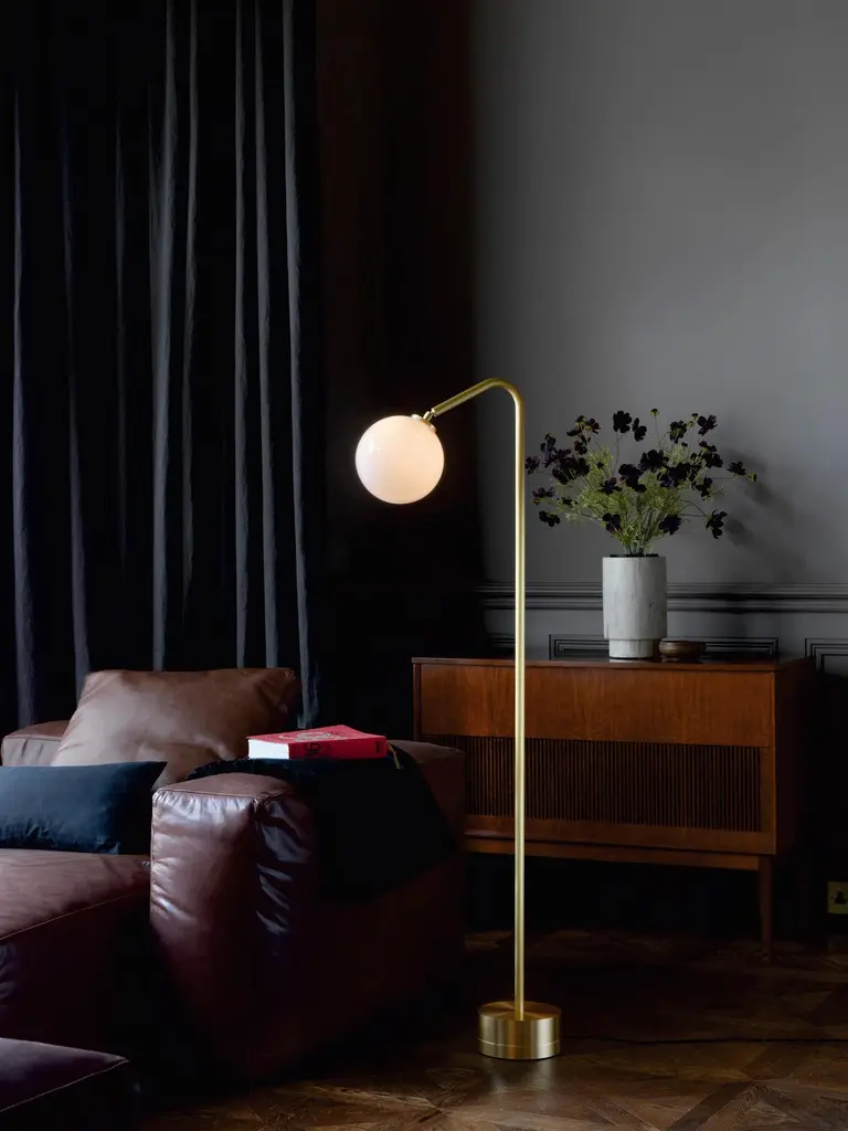 Oscar floor lamp by CTO LightingMaterials: bronze stem with satin brass base and opal glass shadeAlso available in satin brass stem with satin brass base with opal glass shadeDimensions: H 133 x W 34 cm All our lamps can be wired according to each country. If sold to the USA it will be wired for the USA for instance.Other sizes available1 x G9, 25w max halogen (or 2.3w LED 2700k)weight 9kg (19.8lbs)2500mm (92”) cordset with black flex and inline switchno bulbs suppliedFounded in 1998 by Chris and Clare Turner, CTO Lighting launched their first collection on the guiding principles of designing lights of uncompromising quality, using only the finest materials and working with elite British craftsmen. This collection of lighting symbolised elegance and the excellence of British design and manufacturing; the benchmark for all future collections.