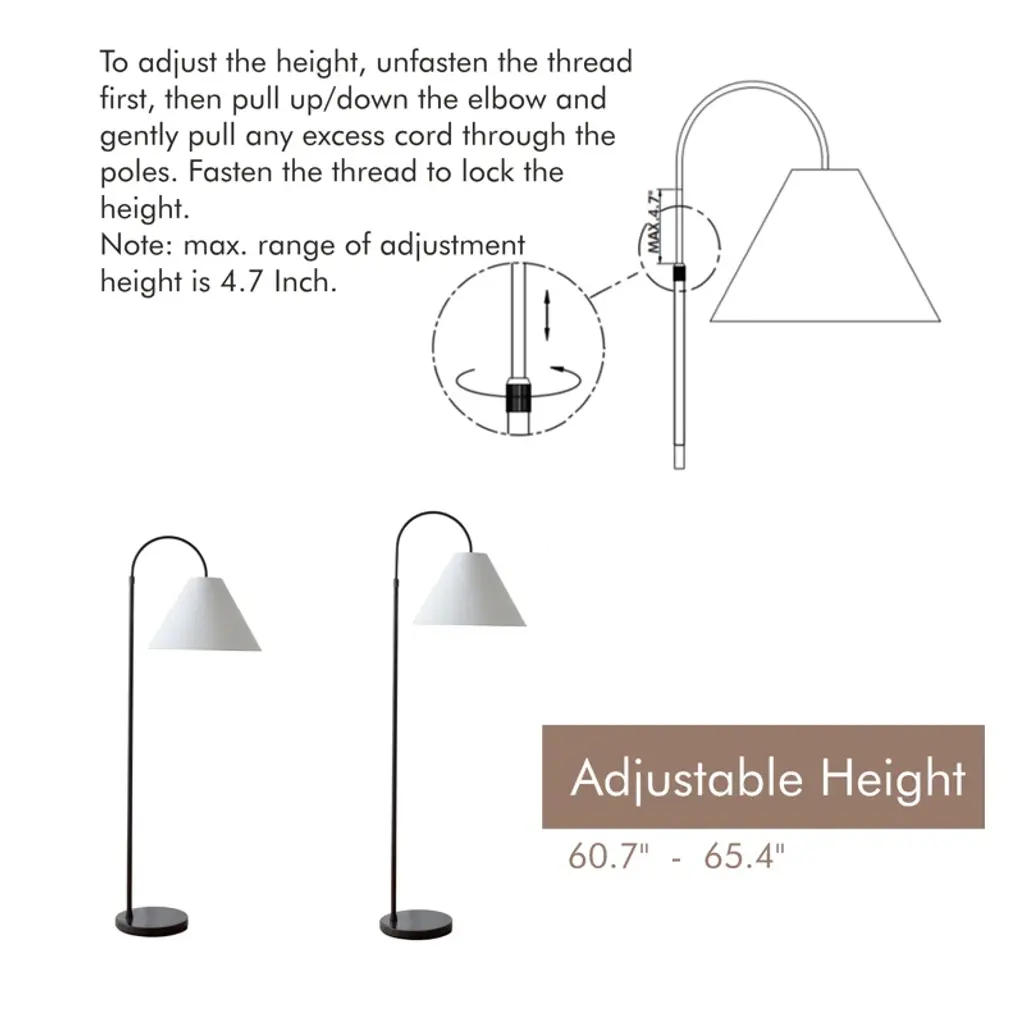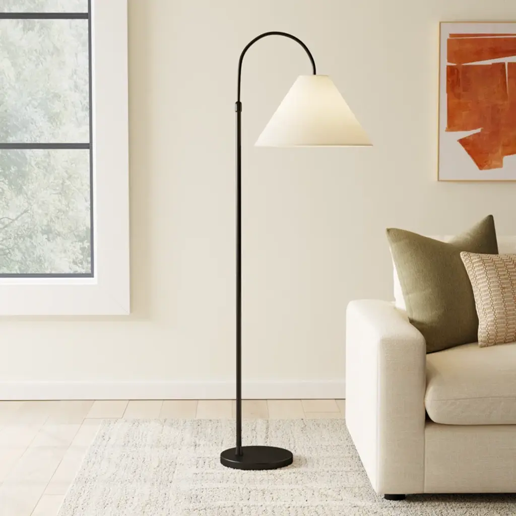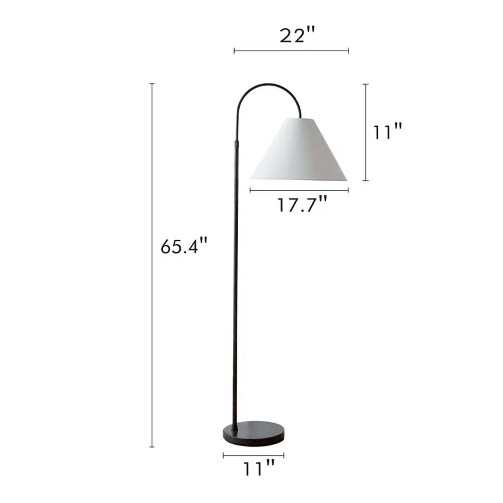 Arching elegance. Our floor lamp features a sleek iron base and a linen-blend shade, perfect for brightening up your living room or bedroom. The timeless design adds a touch of sophistication, while the warm glow creates a cozy ambiance. With a stable base and convenient foot switch, you can enjoy hassle-free brilliance. Illuminate your space with grace, and bask in the beauty of this sophisticated floor lamp.