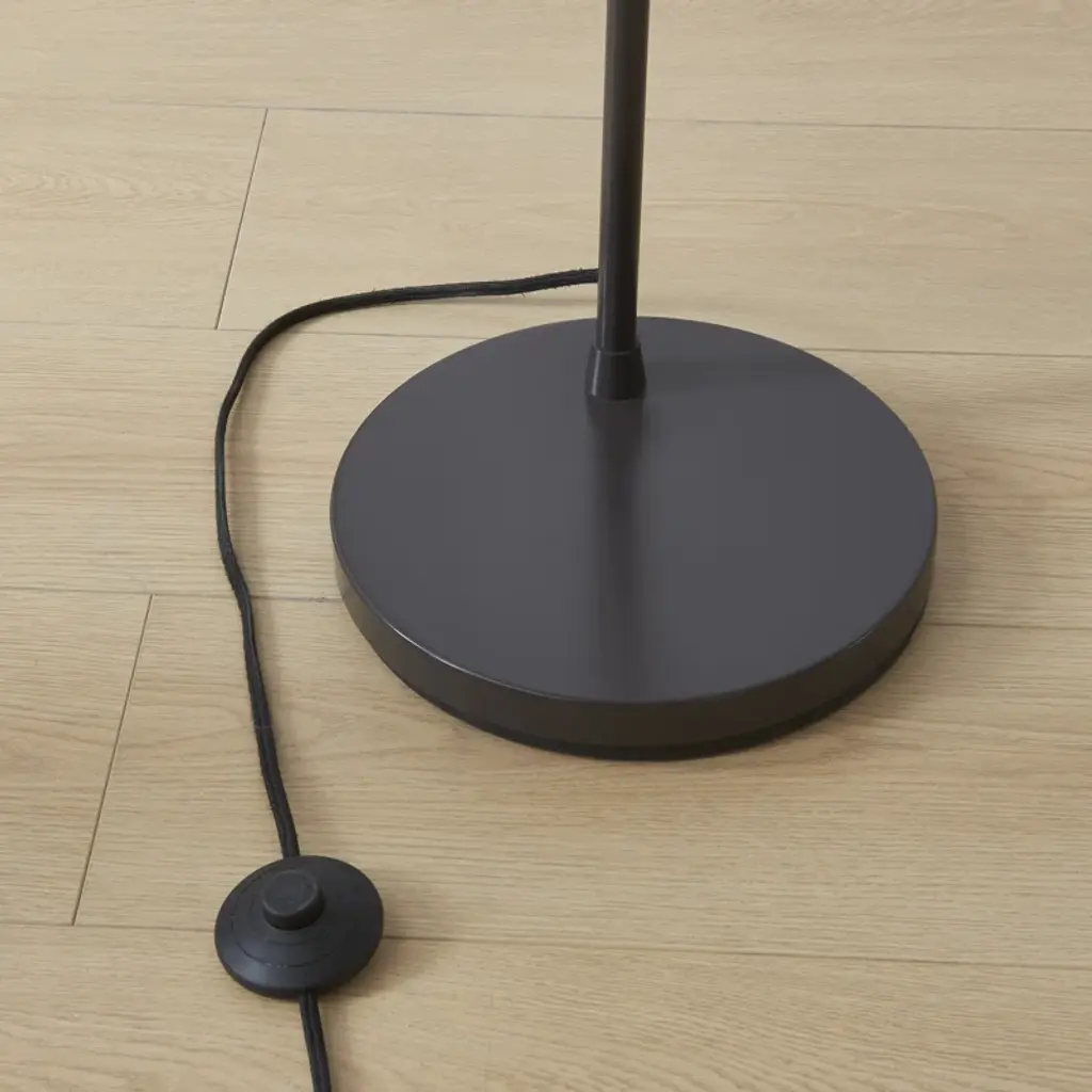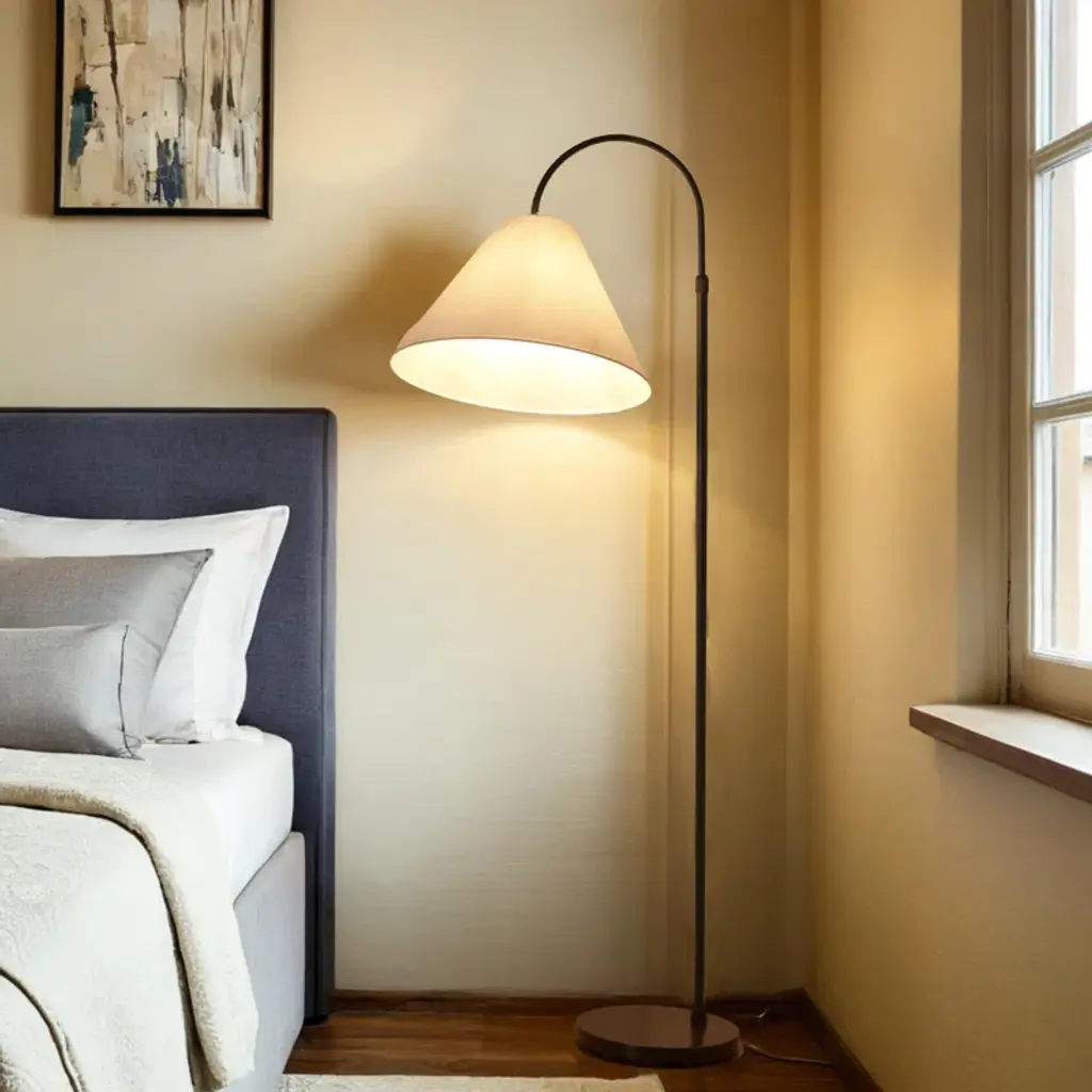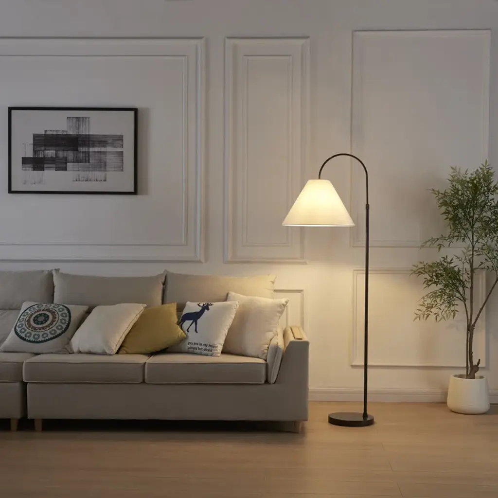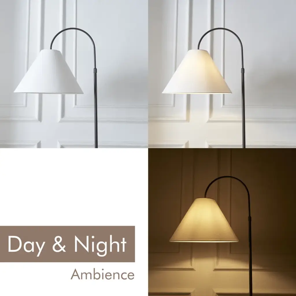 Arching elegance. Our floor lamp features a sleek iron base and a linen-blend shade, perfect for brightening up your living room or bedroom. The timeless design adds a touch of sophistication, while the warm glow creates a cozy ambiance. With a stable base and convenient foot switch, you can enjoy hassle-free brilliance. Illuminate your space with grace, and bask in the beauty of this sophisticated floor lamp.