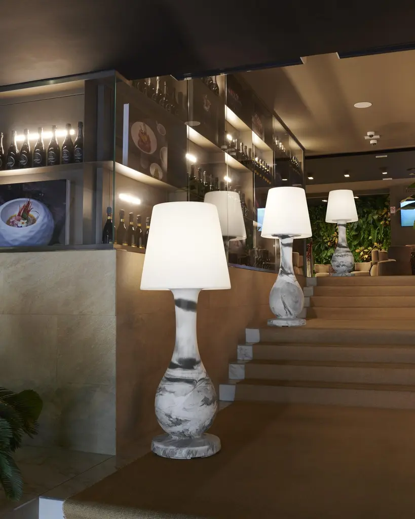 Ottocento Floor Lamp by Paola Navone OTTO StudioDimensions: Ø 60 x H 170 cm.Materials: Polyethylene.Finish: Elephant Grey.This product is suitable for indoor and outdoor use. All our lamps can be wired according to each country. If sold to the USA it will be wired for the USA for instance. Please contact us.Our stories happen in places precious to us. SLIDE was born from the desire to produce furniture and light to create the perfect atmosphere that highlights emotions.Design is inspiration, surprise, joy. It's the amazement of seeing something unique for the first time. It's creating spaces to feel good and live surrounded by beauty. It means giving a personal imprint to indoor and outdoor spaces. It means choosing your ideal element that is the perfect setting for emotions and experiences, which become indelible memories. The founder Giò Colonna Romano knows this well, combining his fervent imagination with thirty years of know-how in the processing of plastic resins, giving birth to SLIDE in 2002. The first note of amazement is the luminous furniture, which immediately became a must have in the world of events. Since 2015, his son Marco Colonna Romano has taken over the reins of the company, with the same desire to grow and innovate as his father. Thanks to a new panache and the team of young people it surrounds itself with, SLIDE becomes a beloved company for outdoor furniture: new shapes, materials and tactile textures have won the hearts and ideas of architects and interior designers around the world. SLIDE has thus created complete collections and furnishings, with new shapes, whose lines arise from collaboration with internationally renowned designers of the caliber of Alessandro Mendini, Paola Navone, Stefano Giovannoni, Fabio Novembre, Marcel Wanders, Karim Rashid, Marc Sadler, Francesco Favaretto and Marcantonio.New materials were chosen and inserted, initially soft and rigid polyurethane, and then comfortable cushions, waterproof fabrics, tactile textures ideal for completing the polyethylene furnishings with taste and class. But SLIDE does not forget its first essence, lighting: in recent years it has developed a line of much more technical lamps for large areas, essential in shape but with great visual impact. For the first time, Slide has managed to give an artisanal twist to an industrial process: to meet the increasingly high demands of living, the production creates non-replicable shades, in which every small imperfection enhances the industrial process and makes each piece unique . Because Slide's strength has always been the careful reading of the market, the creation of something that didn't exist and which then became necessary: here Slide continues its production in Buccinasco, on the outskirts of Milan, but its name and its products reach more than 130 countries around the world.