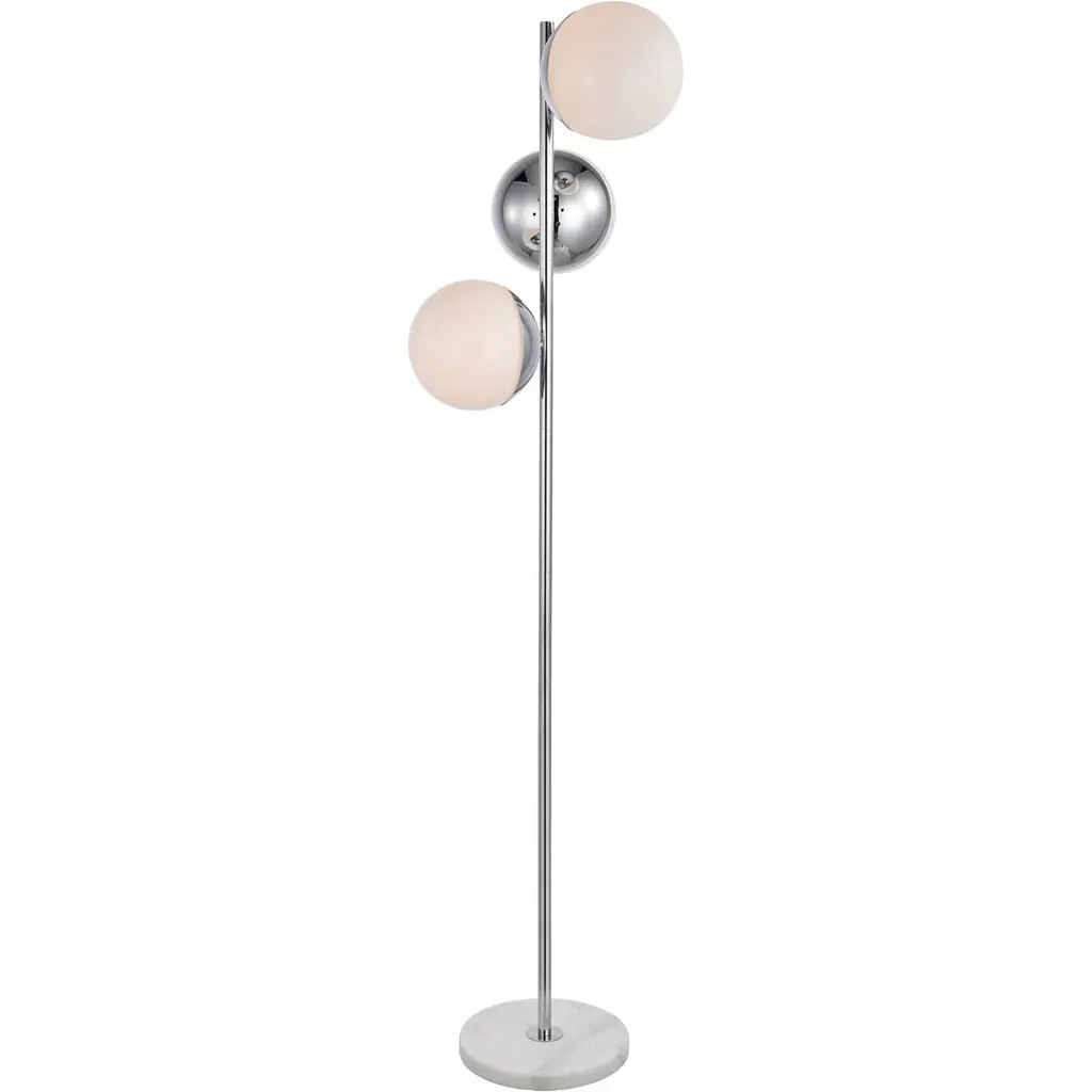 Refined style with a practical design, Oyster Bay Floor Lamp bring cosmopolitan sophistication anywhere, especially to an entryway, office, bathroom, bedroom, or kitchen. The smooth marble base anchors the floor lamp and comes in a chrome finish. A touch of color on top of the frosted white spherical glass shade brings character to this classic style. Living in the big city has never been this easy.