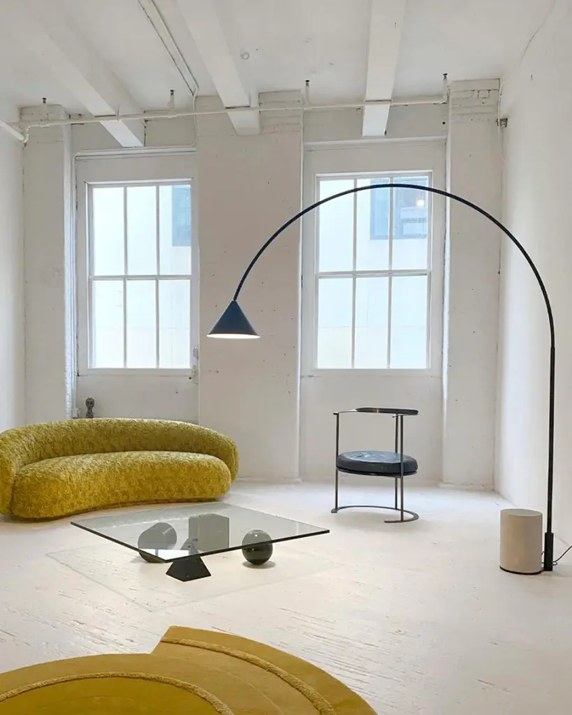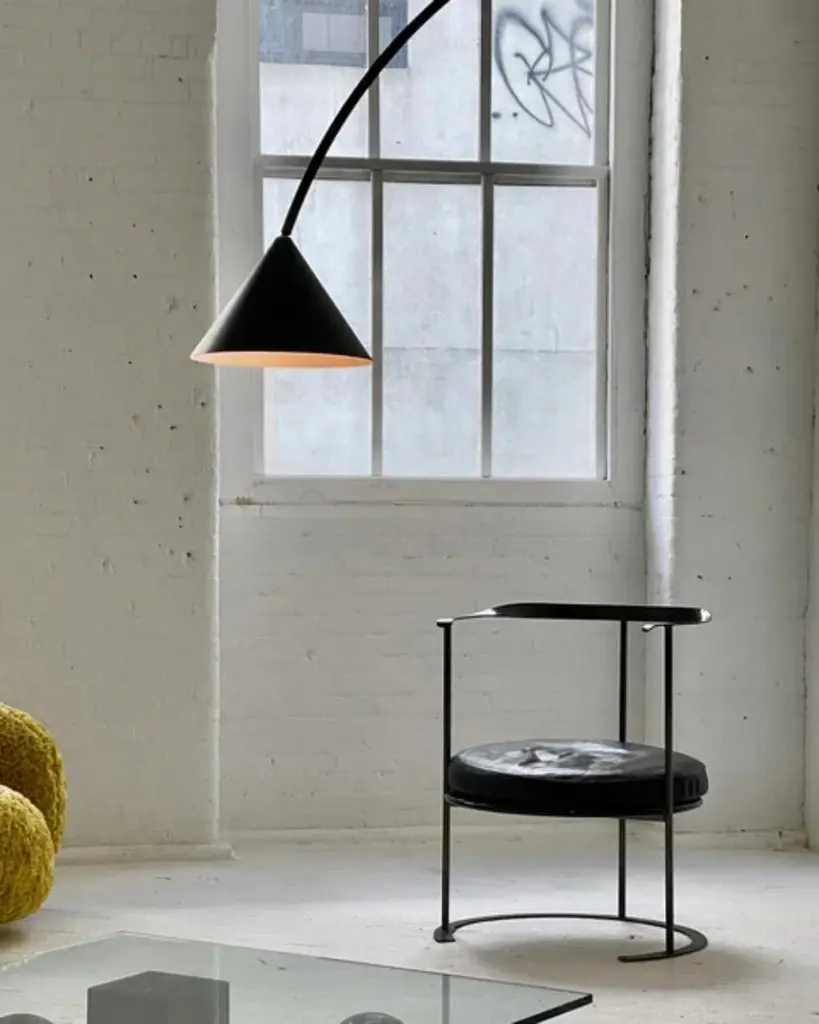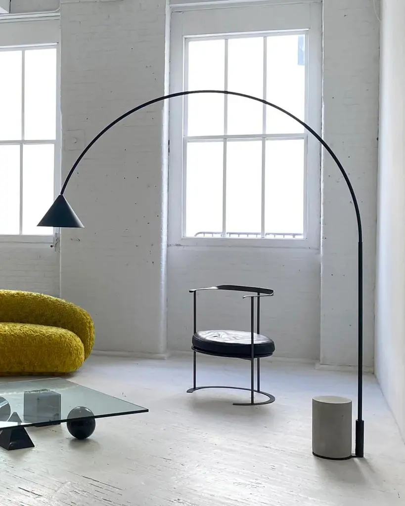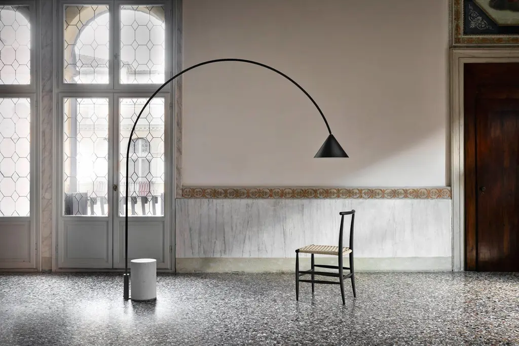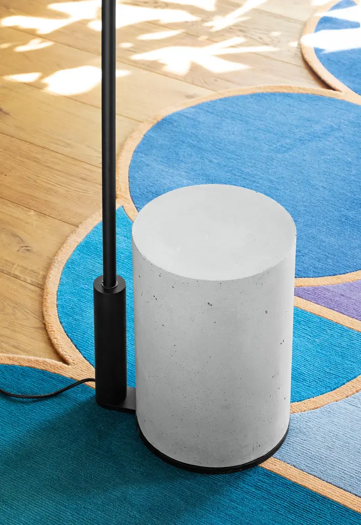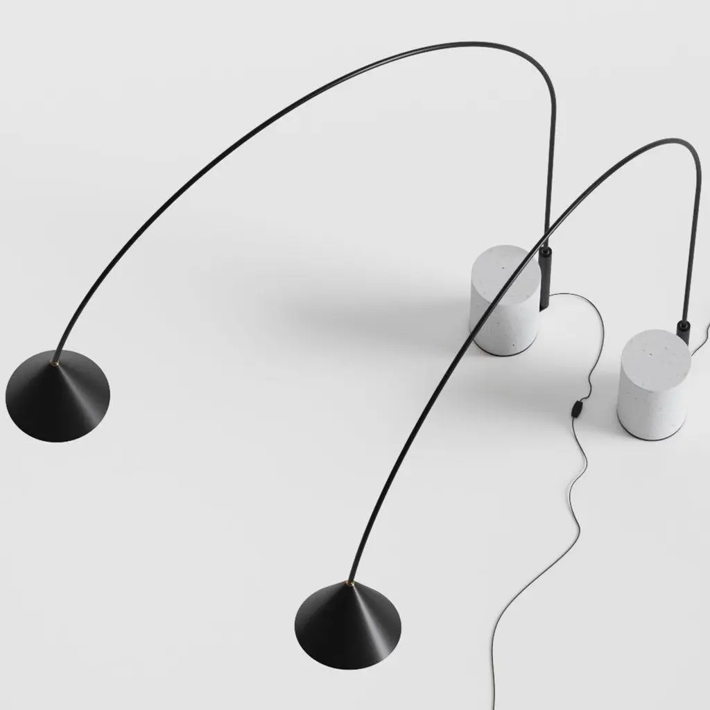 Ozz is made of light and stone. It shifts from shy domesticity to become central to the home, proving itself a key figure, with its large, look-at-me arc. The design starts in the concrete and end in the lampshade. Between the two, the shaft curves in a dramatic trajectory until the point where the light bites the bait.Additional Information:Material: Metal, concreteFinish: Lacquered blackEnvironment: IndoorLightbulb: E27, max 10WDimensions: 34 W x 215 D x 235 H cm