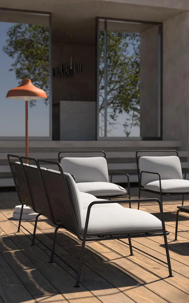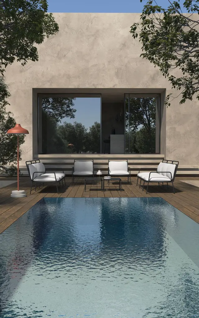In the 1950s Ignazio Gardella began working on the Punta San Martino Hotel project, developed in the larger complex of the Arenzano pine forest, in collaboration with other great architects of the time. The Pagoda lamp was designed for the hotel's swimming pool area, where, based on its positioning, it was declined in a floor lamp version with a stone base, or a wall lamp to illuminate the covered area of the patio. The materials chosen by the architect are suitable for both external and internal use, and the generous proportions of the products guarantee an important stage presence.