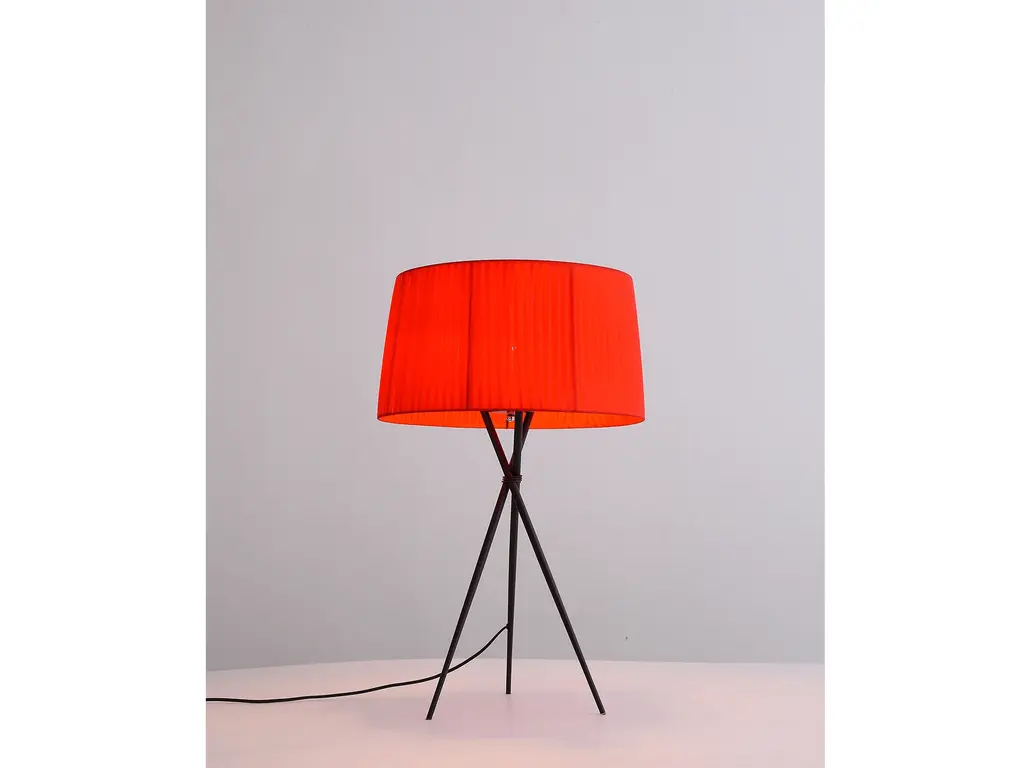 Carbon Steel Base. Red or Black Fabric Shade.