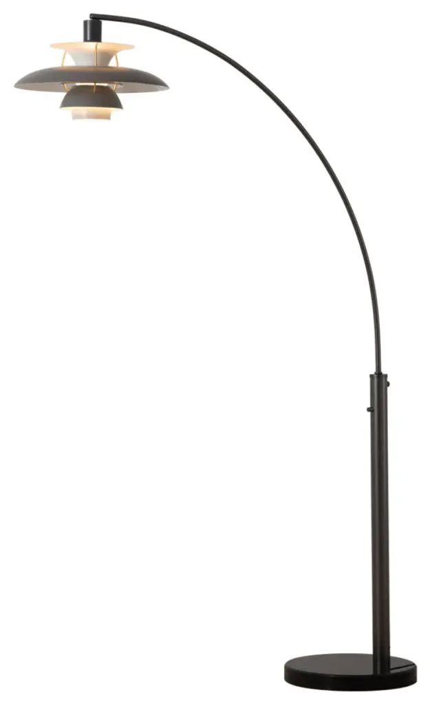 The Palm Springs 1 Light Arc Floor Lamp is a quintessential mid-century classic. The striking shade features multiple tiers arranged in an ombre greyscale design, allowing the light to beautifully bounce off the bright white underside. Updated with a modern gunmetal finish, this lamp exudes a contemporary charm while maintaining its mid-century essence. The sturdy gunmetal column and black marble base ensure a secure placement, making it an enduring addition to your space. With the convenient dimmer switch, you can effortlessly set the right light for any occasion, from cocktail parties to cozy reading sessions. Stylish and sophisticated, the Palm Springs Arc Floor Lamp infuses warmth and spirit into any room, reminiscent of the iconic Palm Springs ambiance. Many iconic NOVA lamps are selling for 5-10 times their original cost as coveted vintage pieces.• Mid-century classic with a modern touch.• Multi-tiered ombre greyscale shade for a striking visual effect.• Gunmetal finish adds a contemporary flair.• Sturdy gunmetal column and natural black marble base for secure placement.• Dimmer switch for customizable lighting.• Energy-efficient LED compatible.• Smart switch compatible - effortlessly sync with Amazon Echo, Google Assistant, and Apple Home for easy & automated control.• Contract grade: high quality materials, quality workmanship, built to last a lifetime & designed in Venice Beach, California. • NOVA of California is the oldest light company in North America and has been making original contemporary designs for 100 years. • Sustainability statement: We are committed to minimizing the unwanted impact our business has on the environment. We care for our planet.