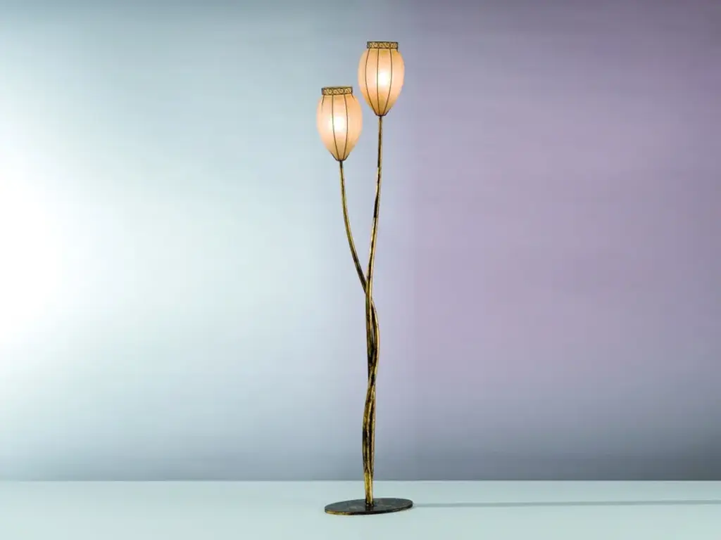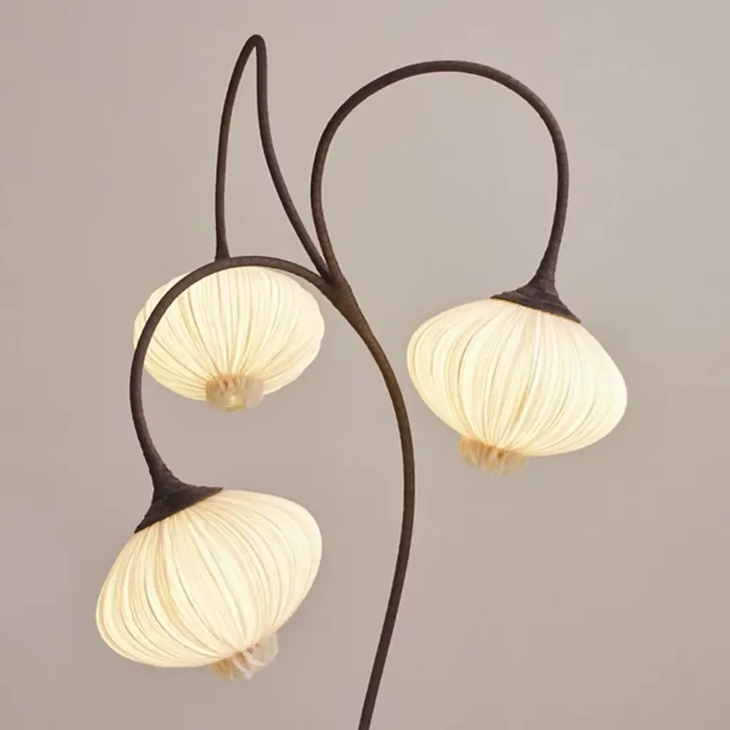 A nature-inspired graceful luminary. The Palm Tree Floor Lamp by Aqua Creations draws up heavily from the natural world to create this truly remarkable piece of art. A part of the Palm Beach collection created in 1996, this fixture lures you with its elegant frame and neatly pleated shade. The branches of the tree are sculpted from hand-bent metal tubes and wrapped in organza fabric. The detachable shades are made from pleated silk and house a lamp each to cast diffused illumination.