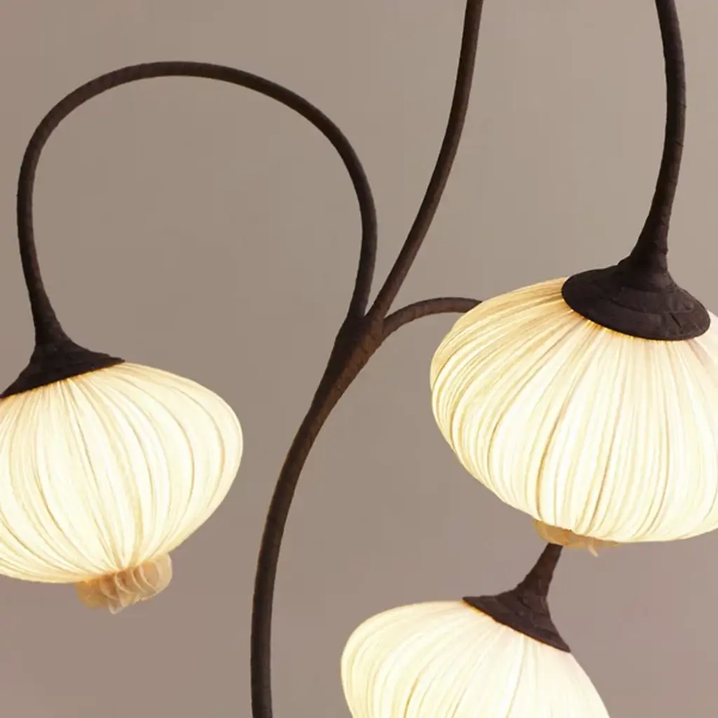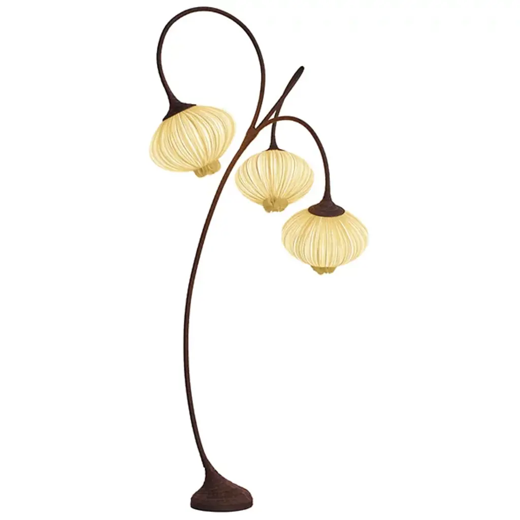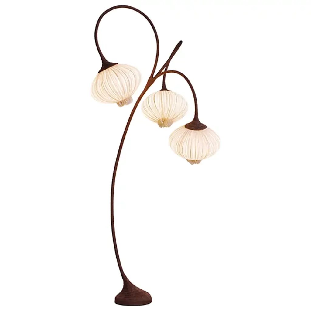 A nature-inspired graceful luminary. The Palm Tree Floor Lamp by Aqua Creations draws up heavily from the natural world to create this truly remarkable piece of art. A part of the Palm Beach collection created in 1996, this fixture lures you with its elegant frame and neatly pleated shade. The branches of the tree are sculpted from hand-bent metal tubes and wrapped in organza fabric. The detachable shades are made from pleated silk and house a lamp each to cast diffused illumination.