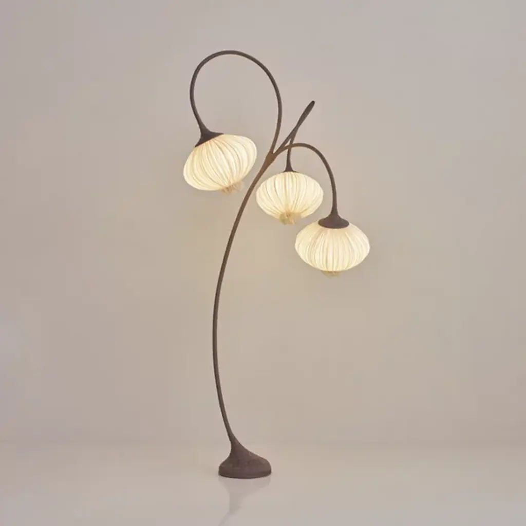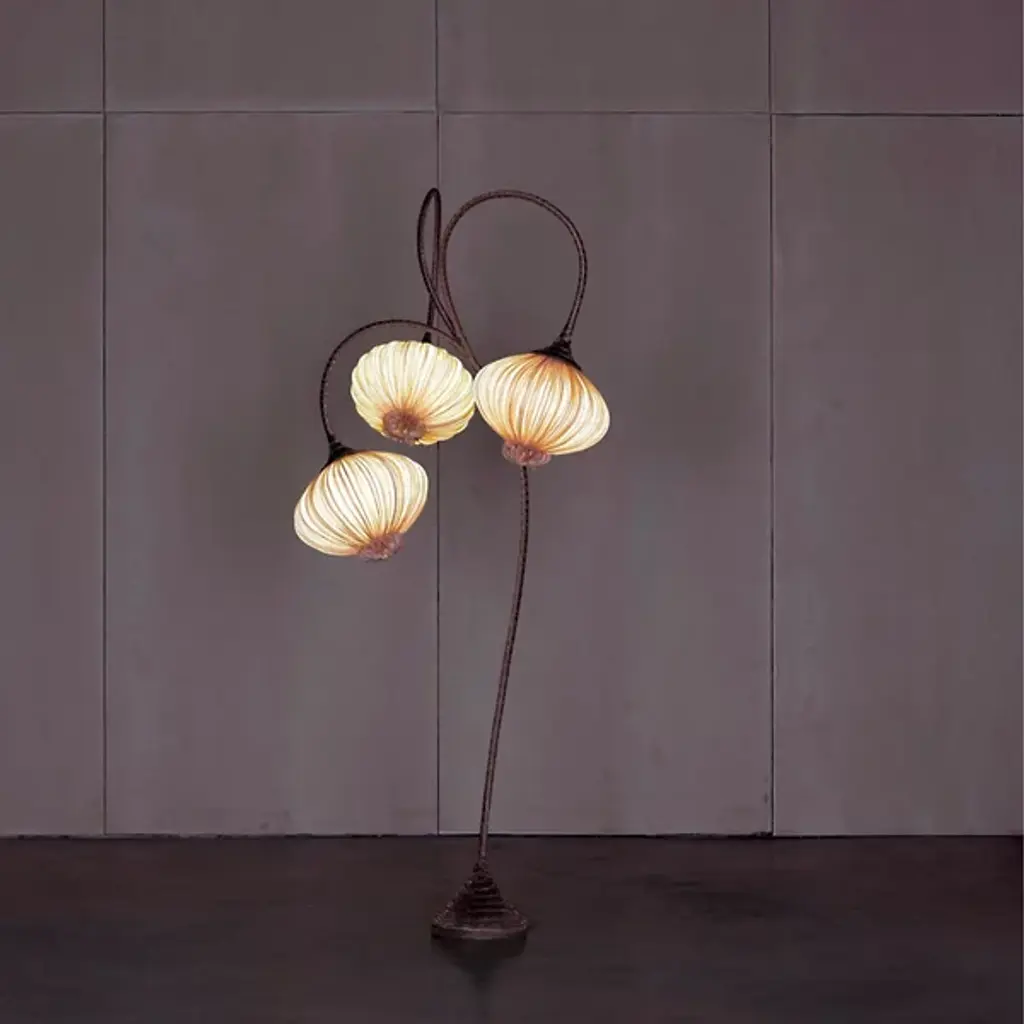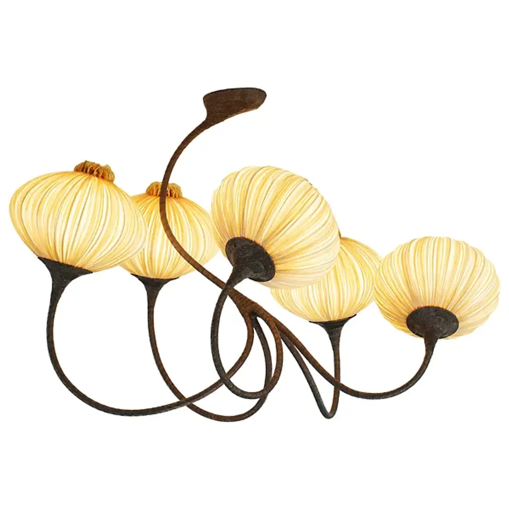 A nature-inspired graceful luminary. The Palm Tree Floor Lamp by Aqua Creations draws up heavily from the natural world to create this truly remarkable piece of art. A part of the Palm Beach collection created in 1996, this fixture lures you with its elegant frame and neatly pleated shade. The branches of the tree are sculpted from hand-bent metal tubes and wrapped in organza fabric. The detachable shades are made from pleated silk and house a lamp each to cast diffused illumination.