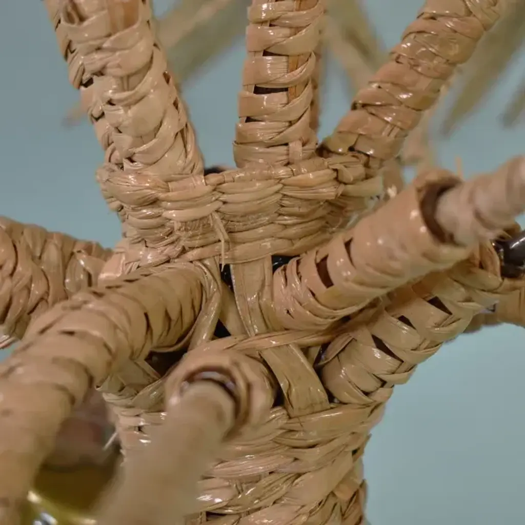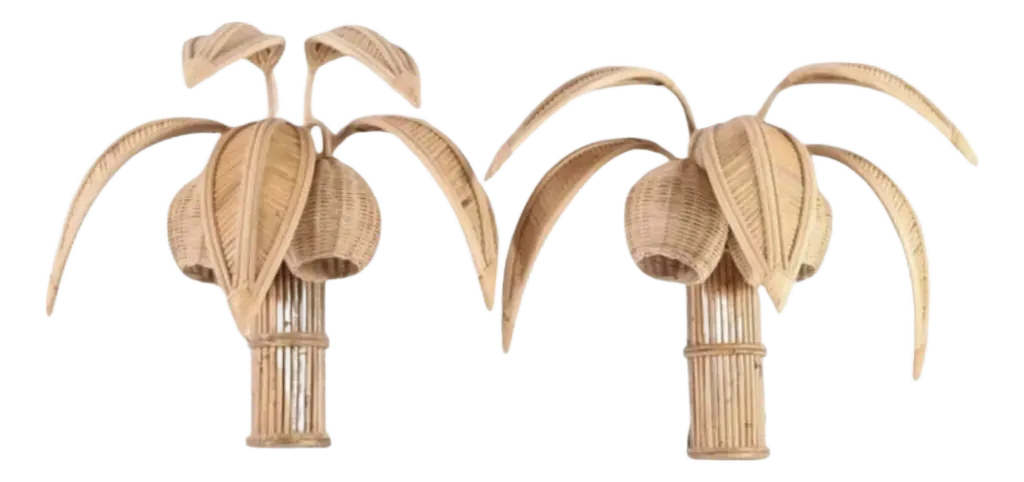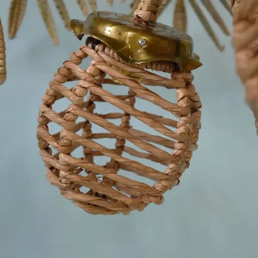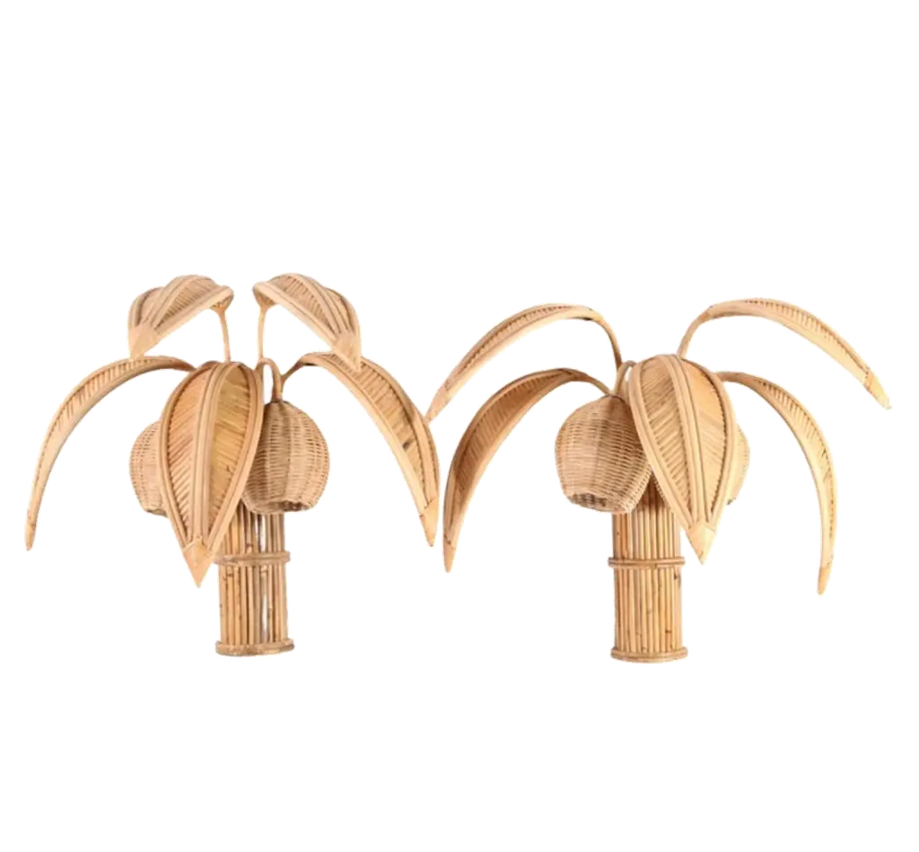 Woven Rattan Palm Tree Floor Lamp by Mario Lopez Torres in nice as found condition. There are minor scuffs to the hand-made rattan. Original wiring. (see photos)
