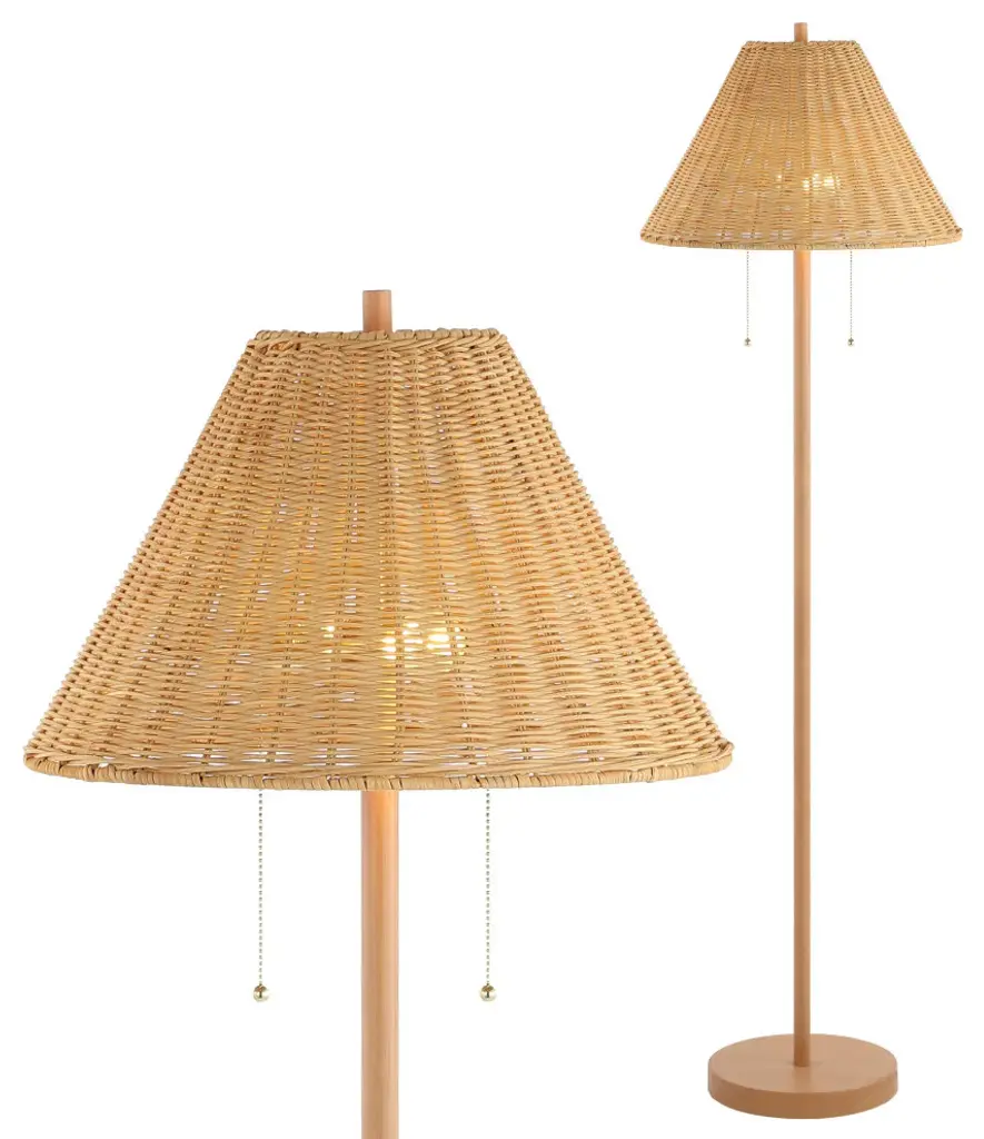 Our mid-century-inspired rattan floor lamp has a modern, conical shade that adds tropical chic to any room. Use two LED bulbs to provide bright light for reading, or light just one for a moody ambiance. This classic lamp adds a retro touch to the living room, bedroom, or home office.Features:Dimensions:About us:You see a lamp.We see a decorative work of art.A perfectly curved shade casts a dramatic shadow on a floor. Compatible with LED lightbulbs: as easy on the environment as they are on the eyes. The JONATHAN Y Lighting collection considers every detail from impeccably sourced materials to designer styling. And our prices are so attractive, we've transformed a functional necessity into a fashion accessory.JONATHAN Y Lighting - a fashion revolution in home decor.