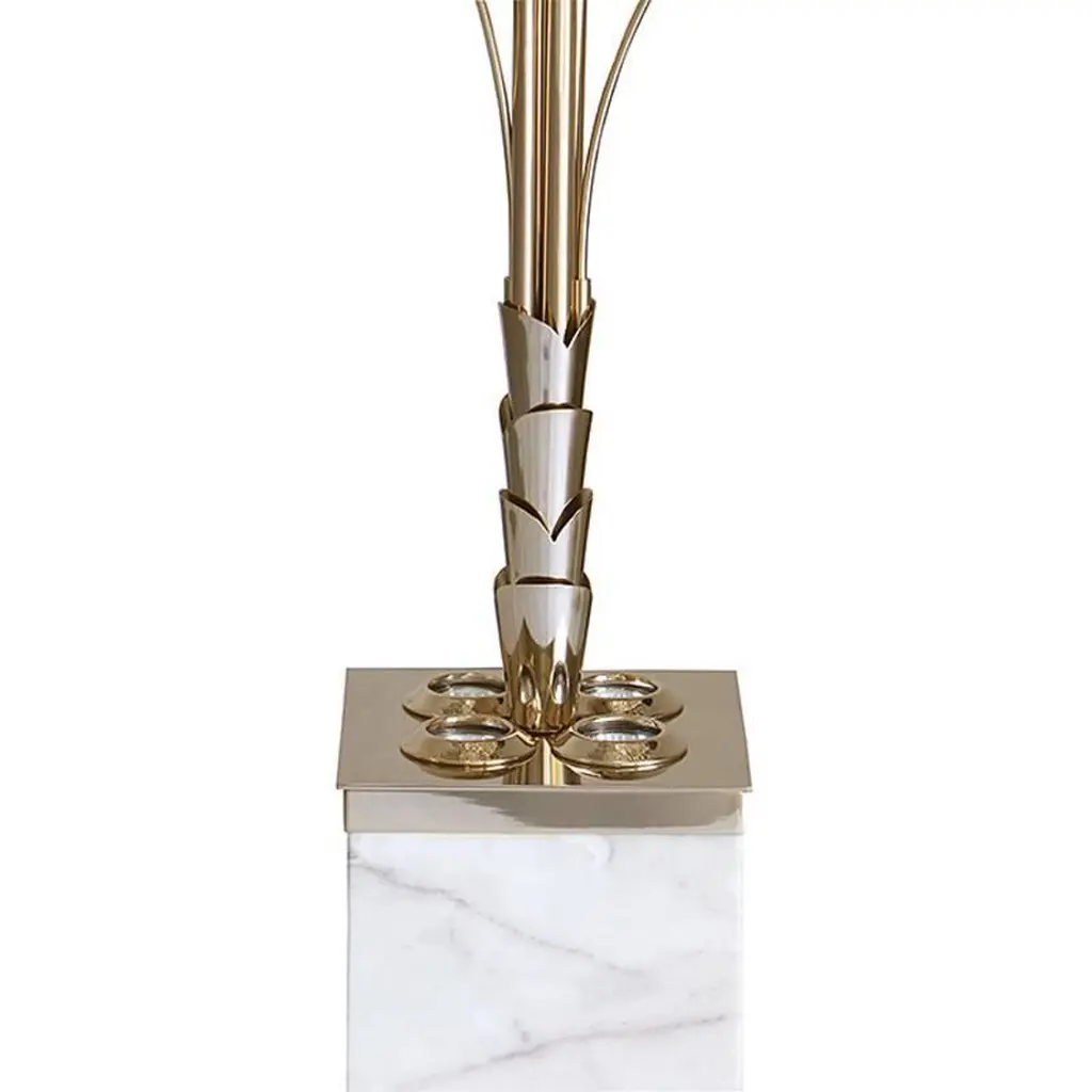 Floor Lamp Palms Tropical, with solid white marblebase with gold plated frame. Lamp structure is goldplated. With 4 light on base top.