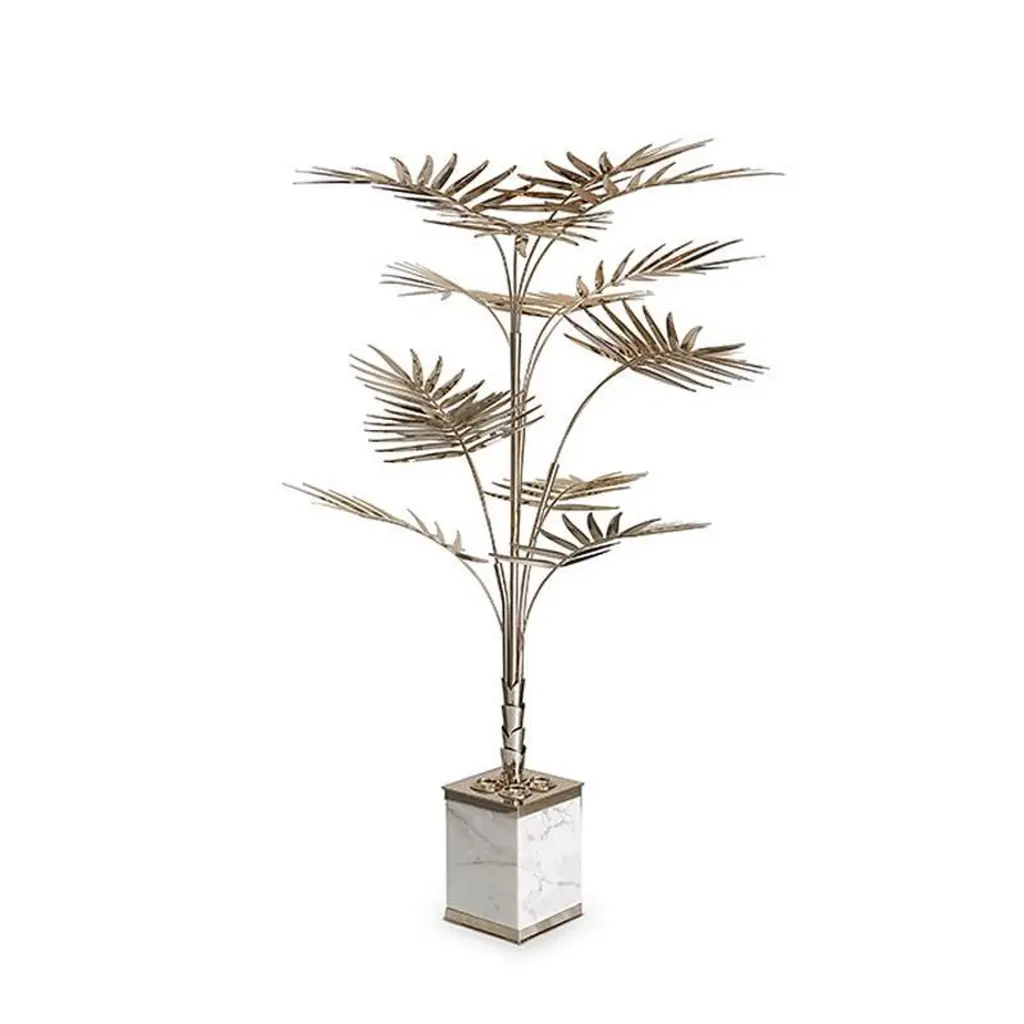 Palms Tropical Floor Lamp Gold Plated And White Marble