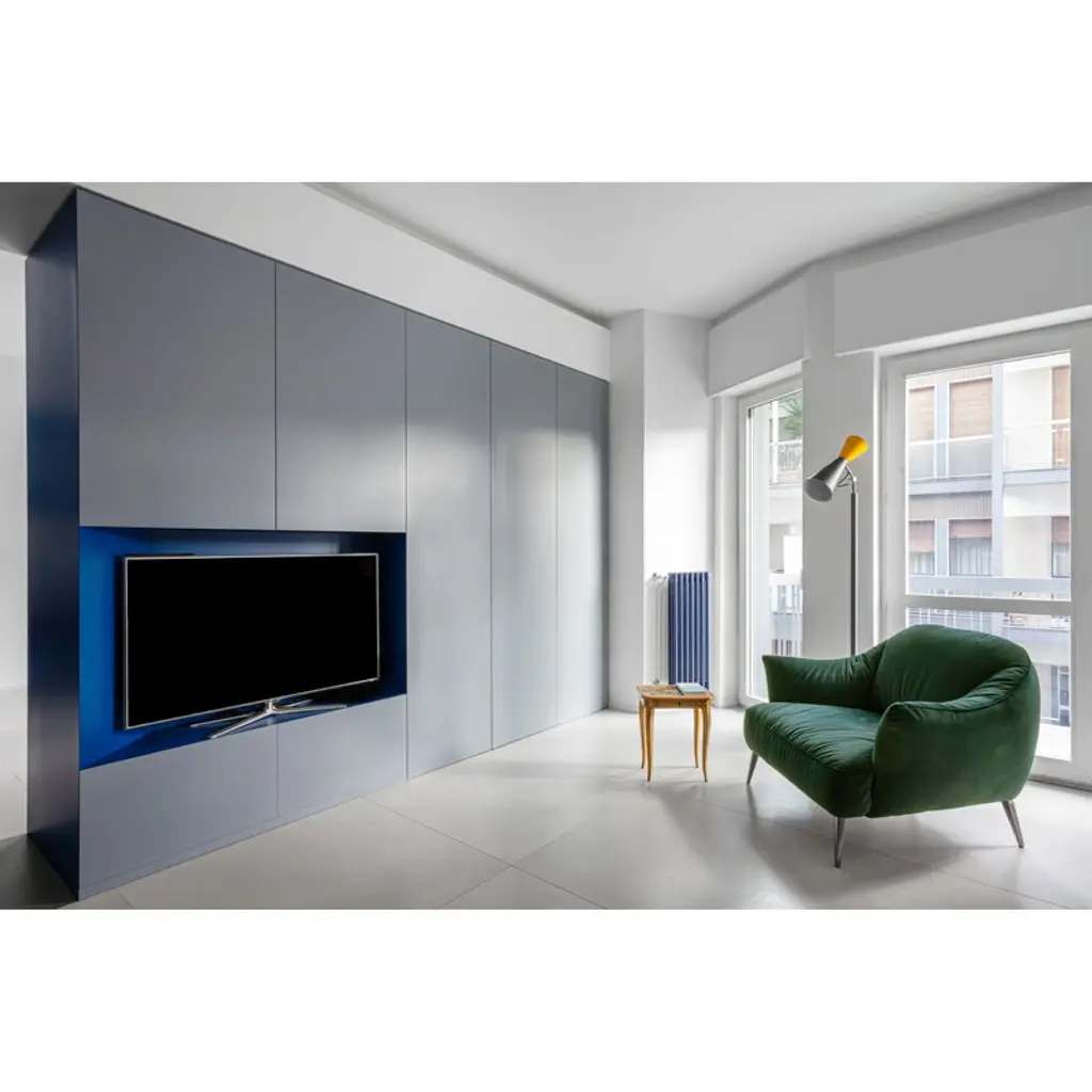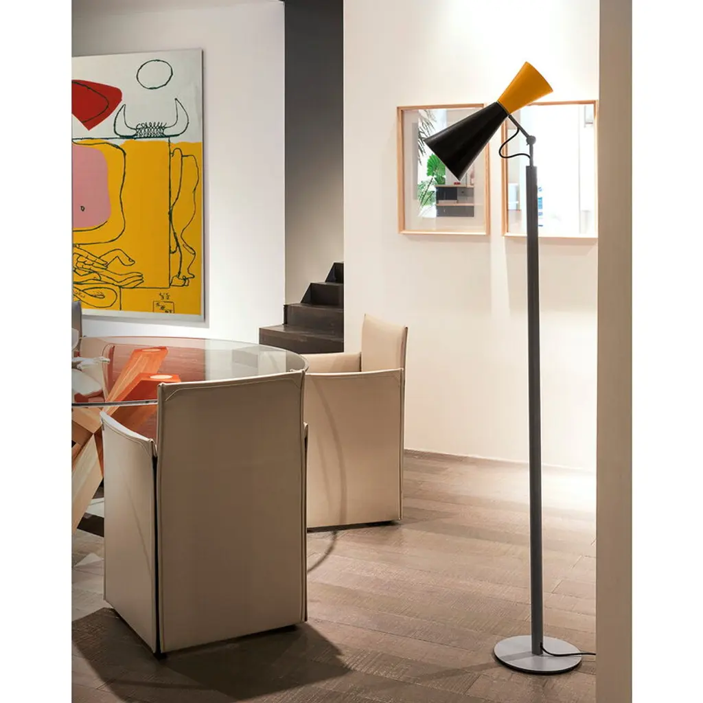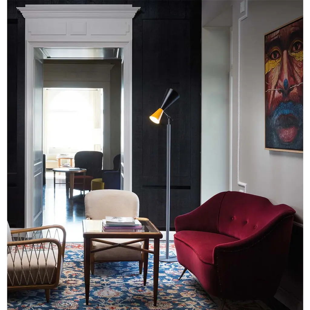 Nemo Lighting’s Parliament is a sculptural floor lamp designed by Le Corbusier, originally created for the Palace of Assembly parliament building the world-famous architect designed in Chandigarh, India. The luminaire is made of painted aluminum and has an adjustable shade that casts the light in two directions – the floor lamp is ideal both as a reading light and for creating mood lighting. The stand of the lamp is matt gray, but its duotone shade is available in a variety of color combinations.