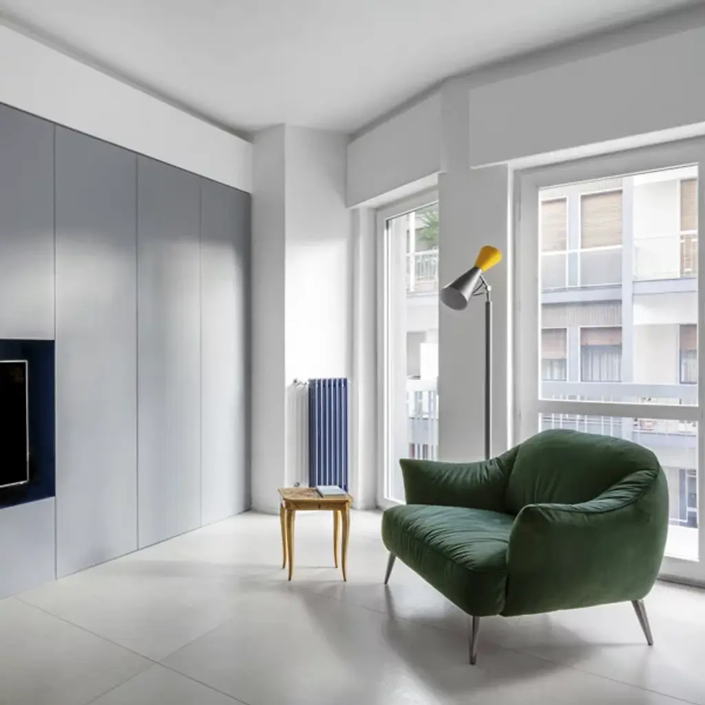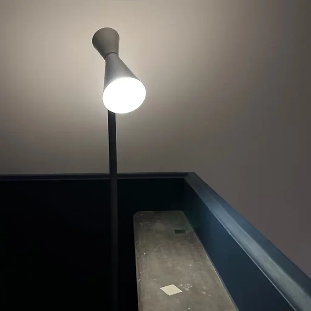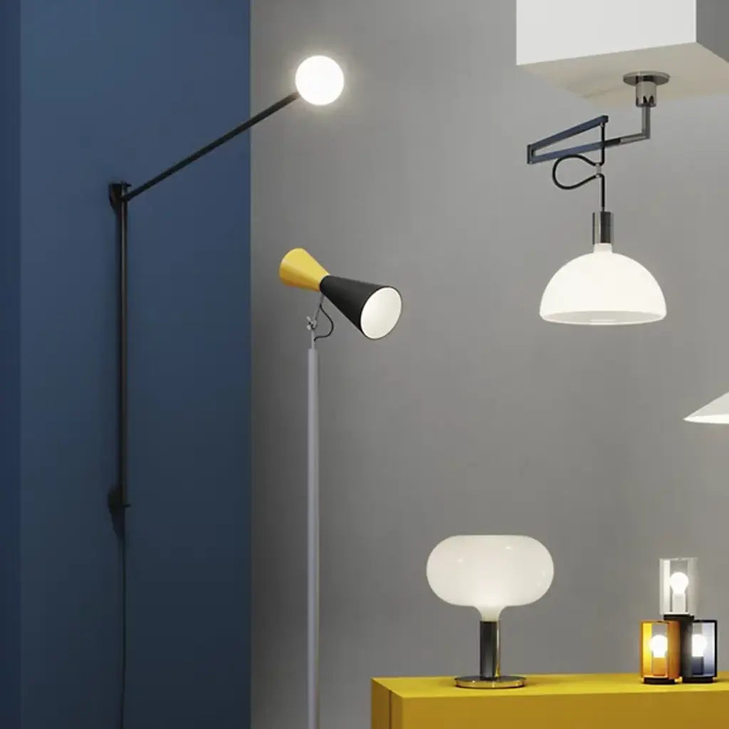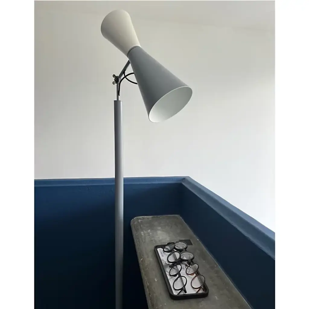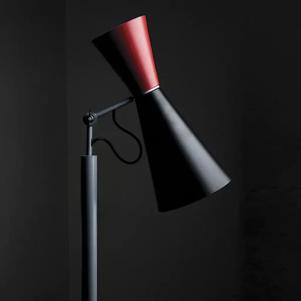 Ambient and warm light. The Parliament Floor Lamp from Nemo features a beautiful form that was designed by Le Corbusier for India’s Chandigarh Parliament in 1963. Le Corbusier stresses functional design solutions, and he looked to primary shapes for this construction, and this floor lamp adorns this space with a slim and solid design. Painted metal cones—which Le Corbusier has described as the “most beautiful forms”—create a fluid silhouette with a dual-lighting setup.