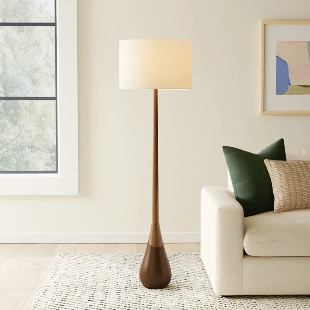 Wood adds warmth and feels to any space, no matter what the existing décor style is. Simply put, it's the most neutral finish since it's complimentary to any interior design. The Paulson floor lamp is no exception. With a two-tone wood finish base and a tall slim teardrop body, this lamp stands out in any space and adds a refined rustic element to your home. Decorate with the Paulsonx and make it easy.