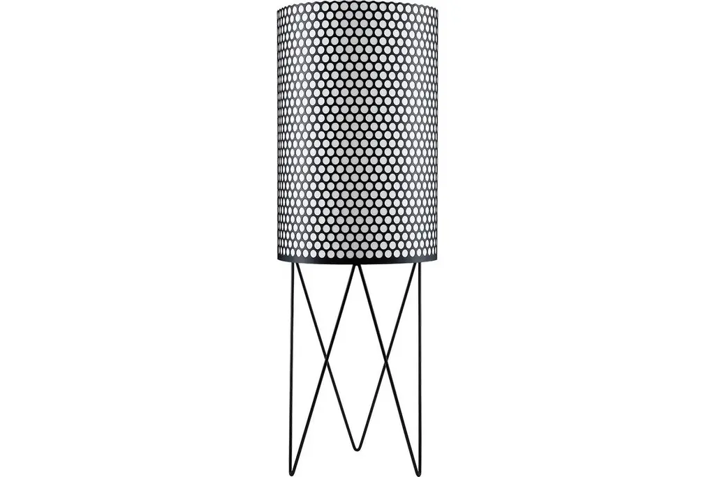 The PD2 floor lamp is designed in 1955 by Barba Corsini to be part of the interior decoration in the attics of one of the world’s most prominent buildings, La Pedrera in Barcelona. For the base of the lamp, inspiration came from the vaulted ceilings of La Pedrera, whilst the inspiration for the cylindrical shape and unique, perforated detail of the chimneys influenced the form of the lampshade. The PD2 floor lamp has a powerful simple character, which also is an apt description of Corsini’s personal design style and fits well into any contemporary home.Barba Corsini was in 1955 assigned to remodel the attics of the prominent Antoni Gaudí landmark La Pedrera. Used as a laundry room and a storage area, Corsini transformed the space into 13 modern apartments. To complete the architectural experience, Corsini specifically designed and decorated the apartments with his own designs, inspired by the characteristic appearance of the building.In 1991, it was decided that the loft space of La Pedrera should be restored according to the original conception of Gaudí. The interior made by Corsini was torn down and most of it thrown away. During the renovation the architect and gallerist, Joaquim Ruiz Millet, discovered the PD2 Floor Lamp and saved it from being thrown in the trash. Ruiz Millet started to collaborate with Corsini and his designs, and recreated the original pieces, specifically in order to help rescuing his work, make it more known and available for the public.The textile cord color matches the shade color. Dimmer switch on cord.