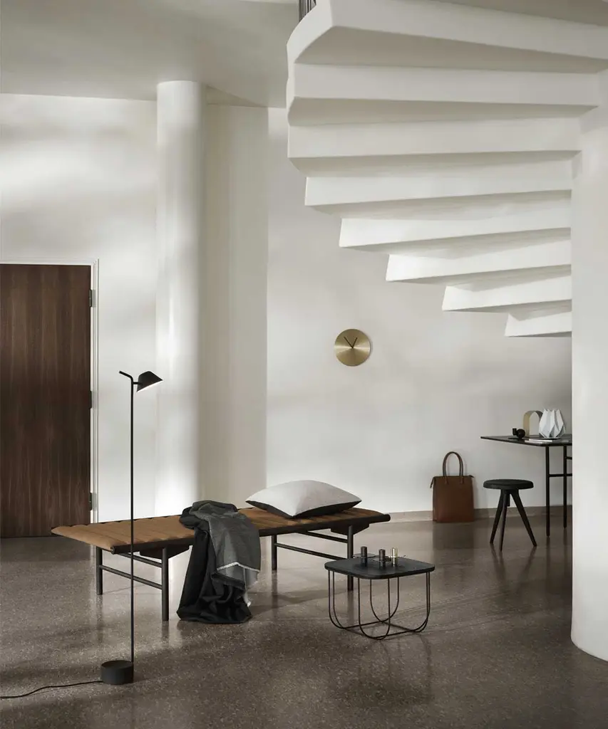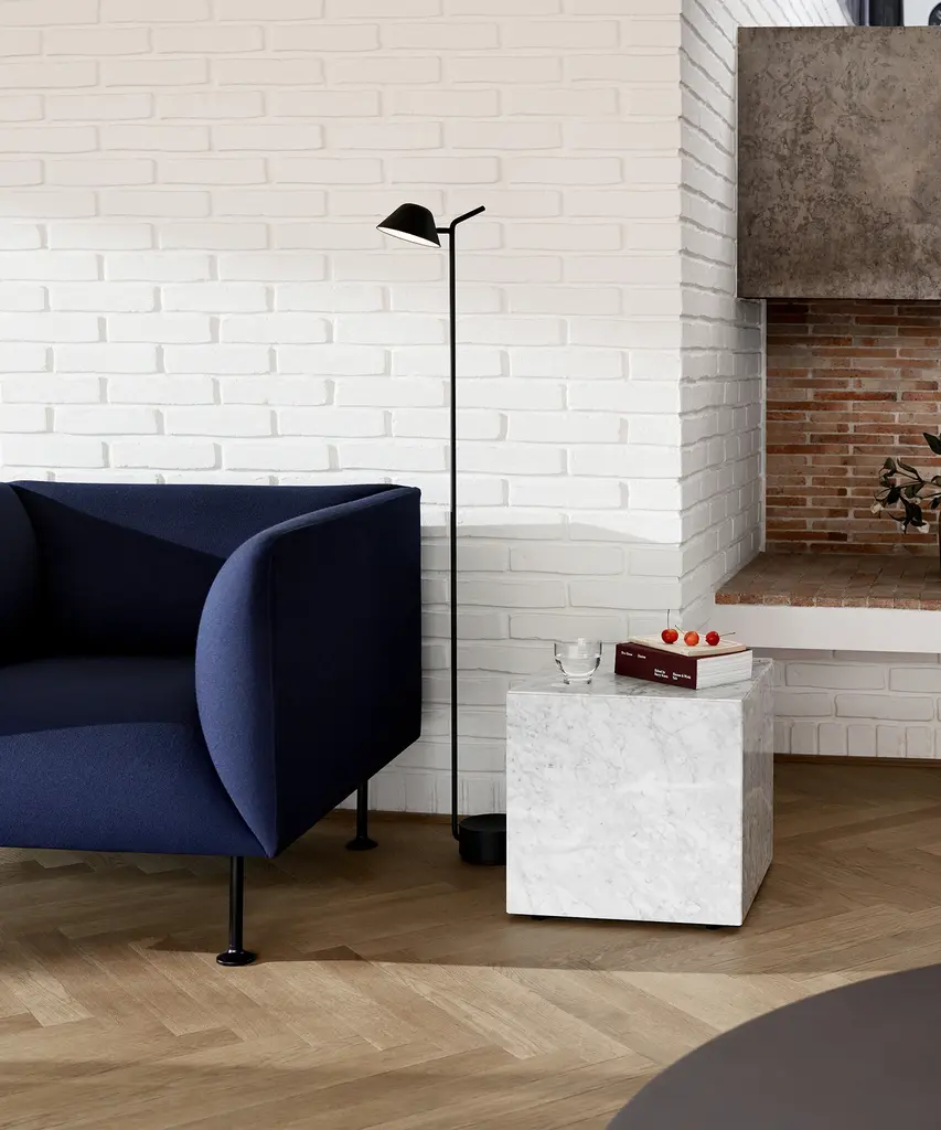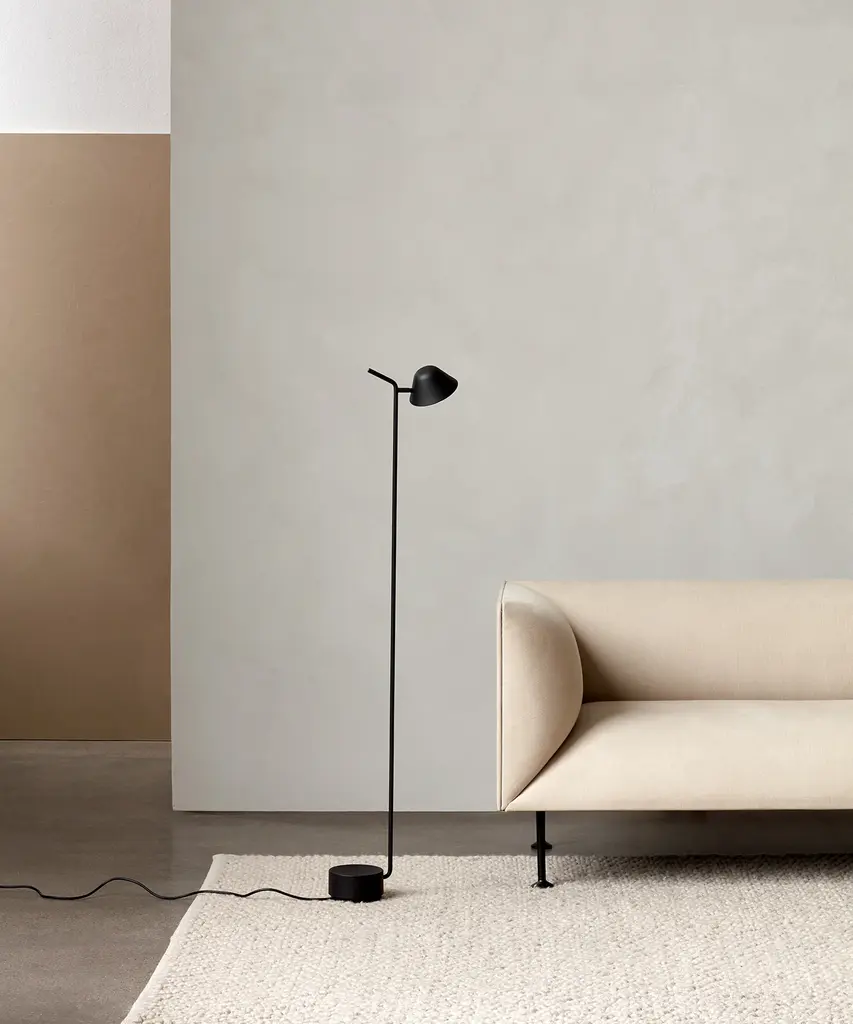 The Swedish designer Jonas Wagell designed the Peek lamp as a floor lamp to accompany a sofa he designed a few years ago. The design is simplistic, humble, and somewhat quirky. He explains, "I find that floor lamps are often big and quite dominant in interiors. I needed a lamp which was small and humble and simply "popped up" where you needed some light. The Peek lamp has a heavy base with a long slender stem and a shade, which gracefully peeks over the back of a sofa or armchair." The shape and silhouette of the Peek floor lamp were the basis for the smaller Peek table lamp. Use the floor lamp as a reading light by the sofa or as ambient room lighting. The top end of the stem has a touch-sensitive dot that functions as a dimmer. Jonas Wagell on the design: "Although the form derives from a functional requirement I believe it's important that the lamp has personality and an expression. I strive to create simplistic objects and products that are intuitive and easy to understand. In essence, the Peek lamps only consist of three parts; base, stem, and shade. The form is reduced to the necessities and the expression becomes iconic." Designed by Jonas Wagell for Audo Copenhagen North America.