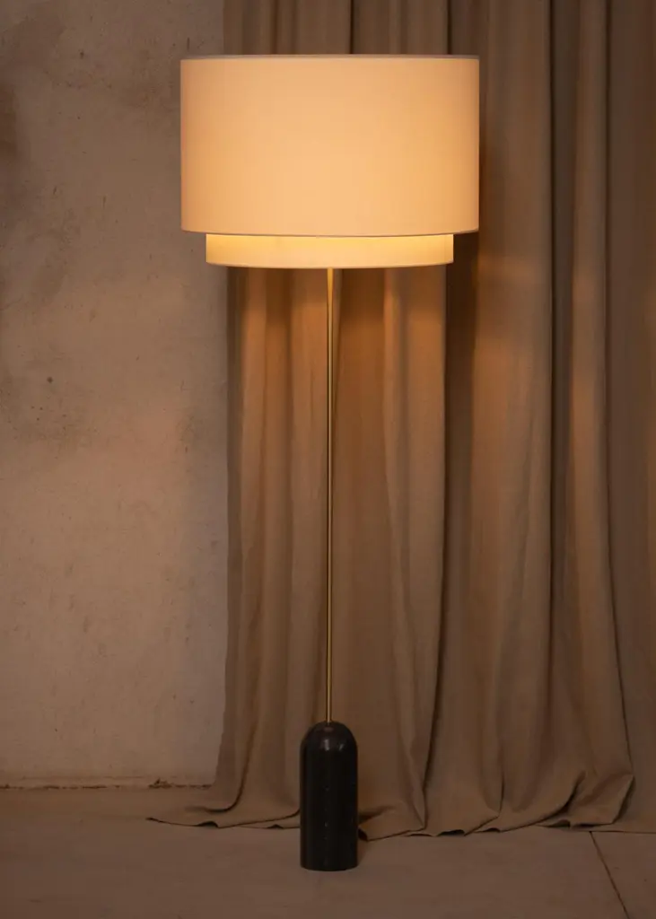 Pendolo Duoblo Black Marble Floor Lamp by Simone & MarcelDimensions: D 60 x W 60 x H 176 cm.Materials: Brass, cotton and black marble.Also available in different marble and alabaster options and finishes. Custom options available on request. Please contact us. All our lamps can be wired according to each country. If sold to the USA it will be wired for the USA for instance.Our mission is to encourage people to make their home the best place to be, to get inspired and to receive friends and family. Designed and manufactured by ourselves, we offer lightings to help people creating distinctive living spaces. Enhancing the authenticity of natural and organic materials using associations and contrasts. Extreme quality behind a facade of ultra-minimalism. We find our materials to the source to ensure we give the best value to our products. Balancing simplicity and exception with geometries that marry, repeat, multiply, layer and accumulate. Creating solid design, manufactured to last generations. In the small town of Consuegra, a 100 km drive south of Madrid in the province of Toledo, this is where we do everything.